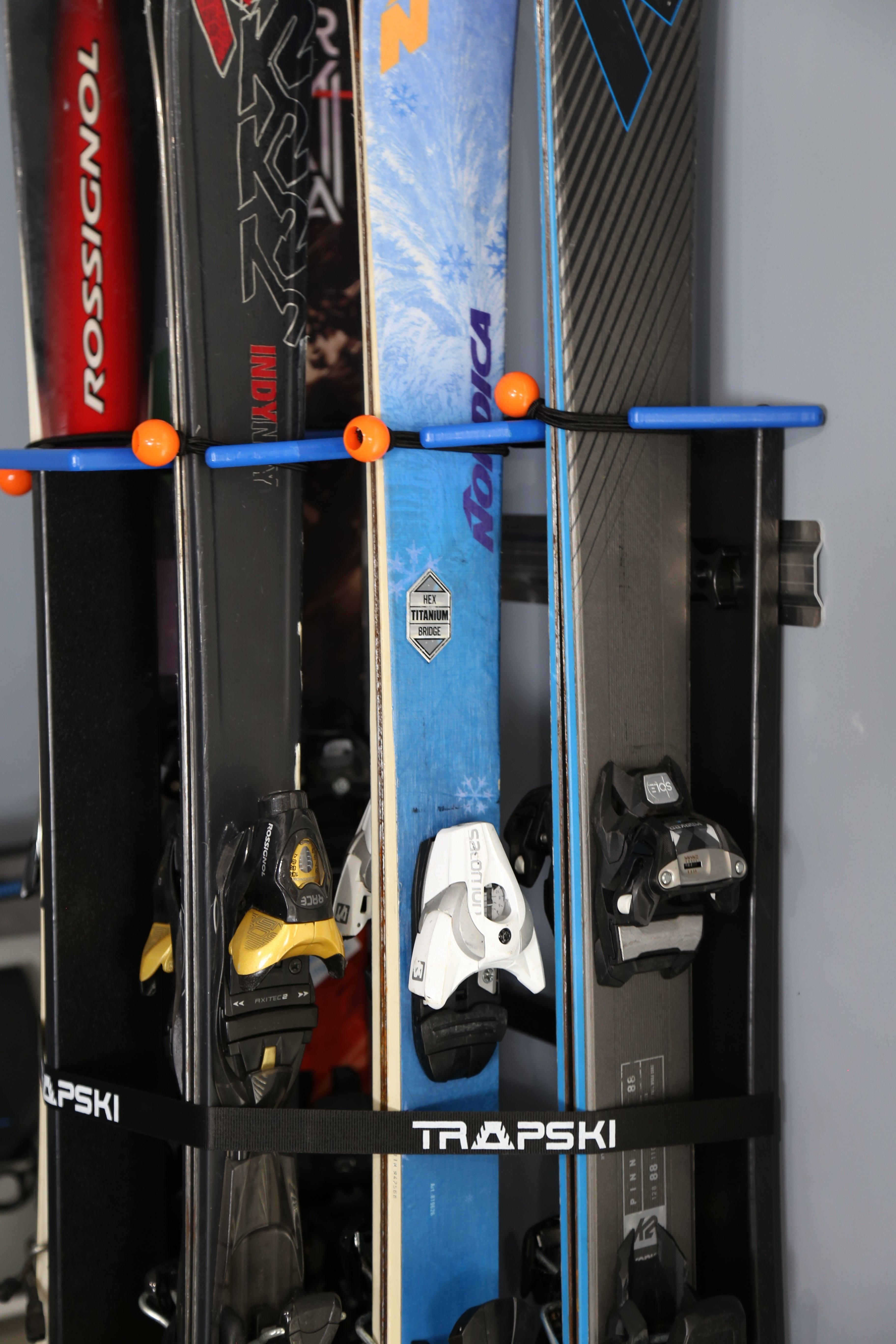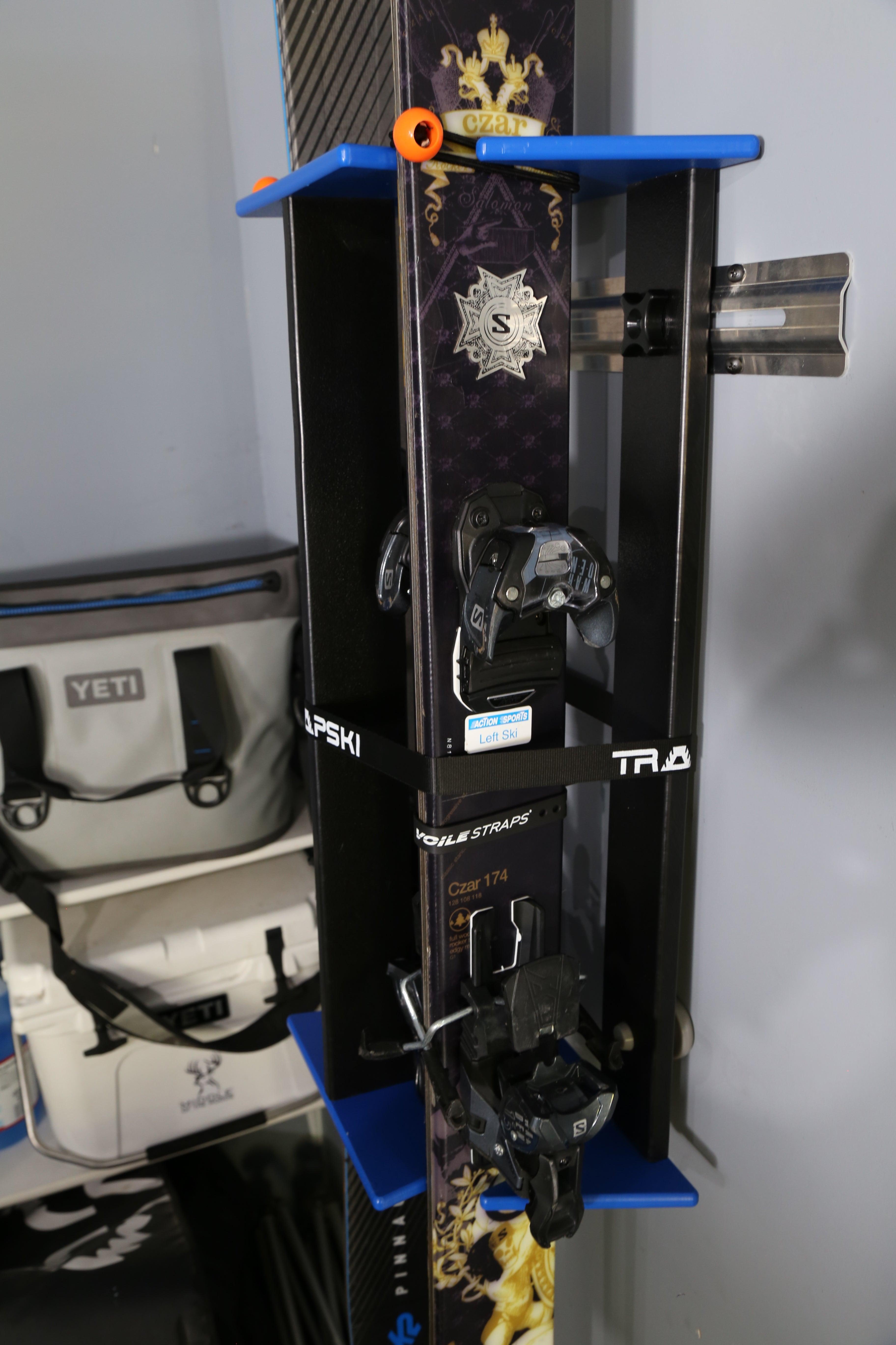 Directions: Position strap around the center of the rack and pull strap firmly to secure skis and snowboards (see photo above).