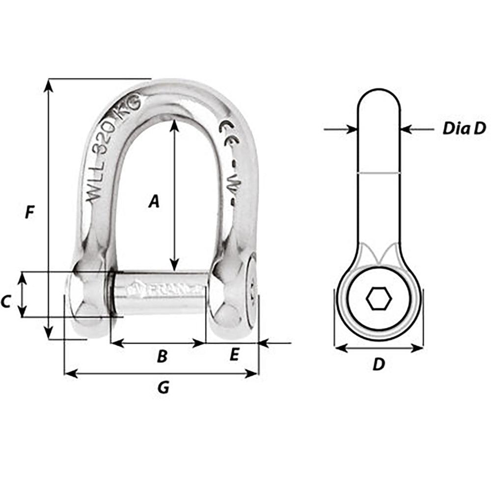 Self-Locking Allen Head Pin D Shackle - 6mm Diameter - 1/4"