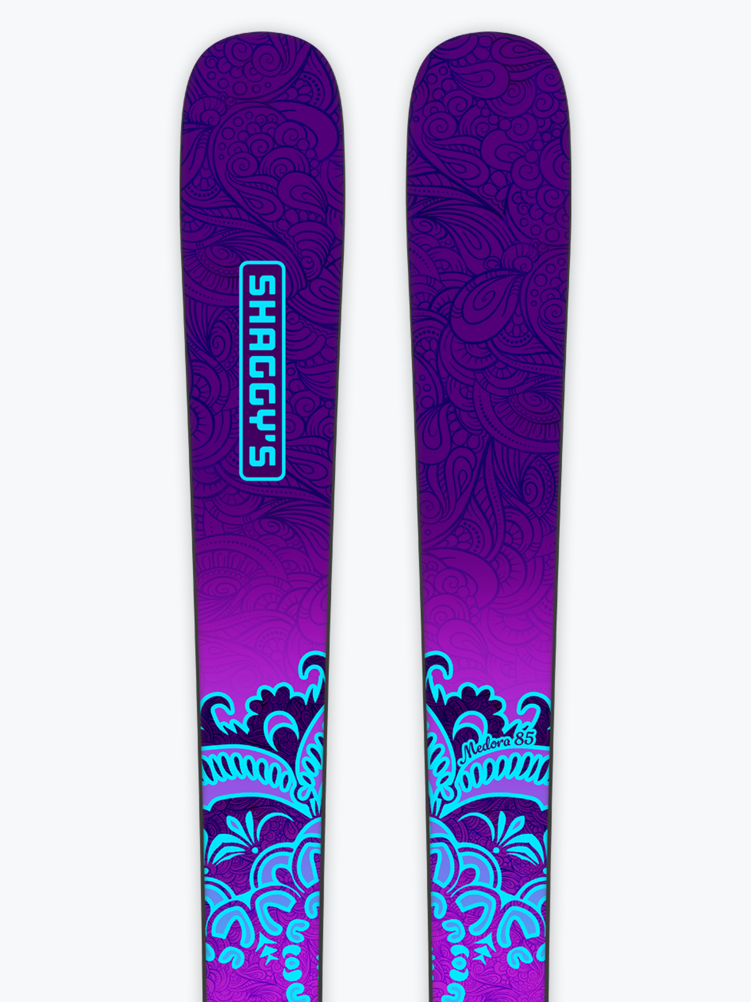 The Medora 85 is the narrower, quicker version of our widest women's ski, the Medora 95. It's a playful twin tip that will take you all over the mountain when you don't often find fresh snow. From open groomed runs to bumps and gladed trees, the Medora 85 is maneuverable and quick edge-to-edge. And when the snow is chopped up, it'll cut through it like a hot knife through butter.