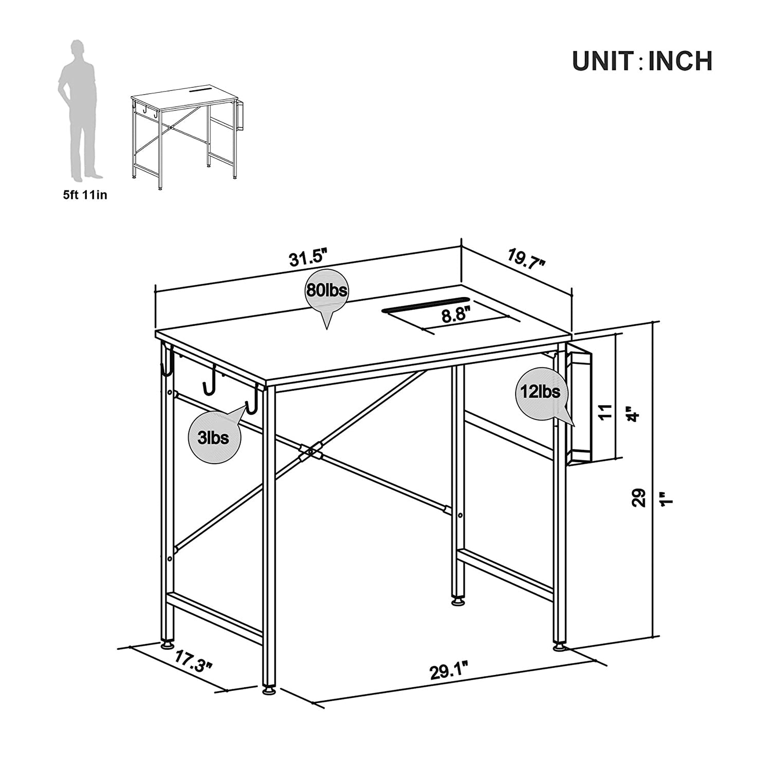 This work desk includes a storage bag and iron hooks that effectively organize space to keep your office clean and tidy. Use them to keep study materials, books, and important items easily accessible but out of sight. Conveniently hold any iPad, tablet, smartphone, or kindle with the included 8.8-inch built-in iPad stand groove.
