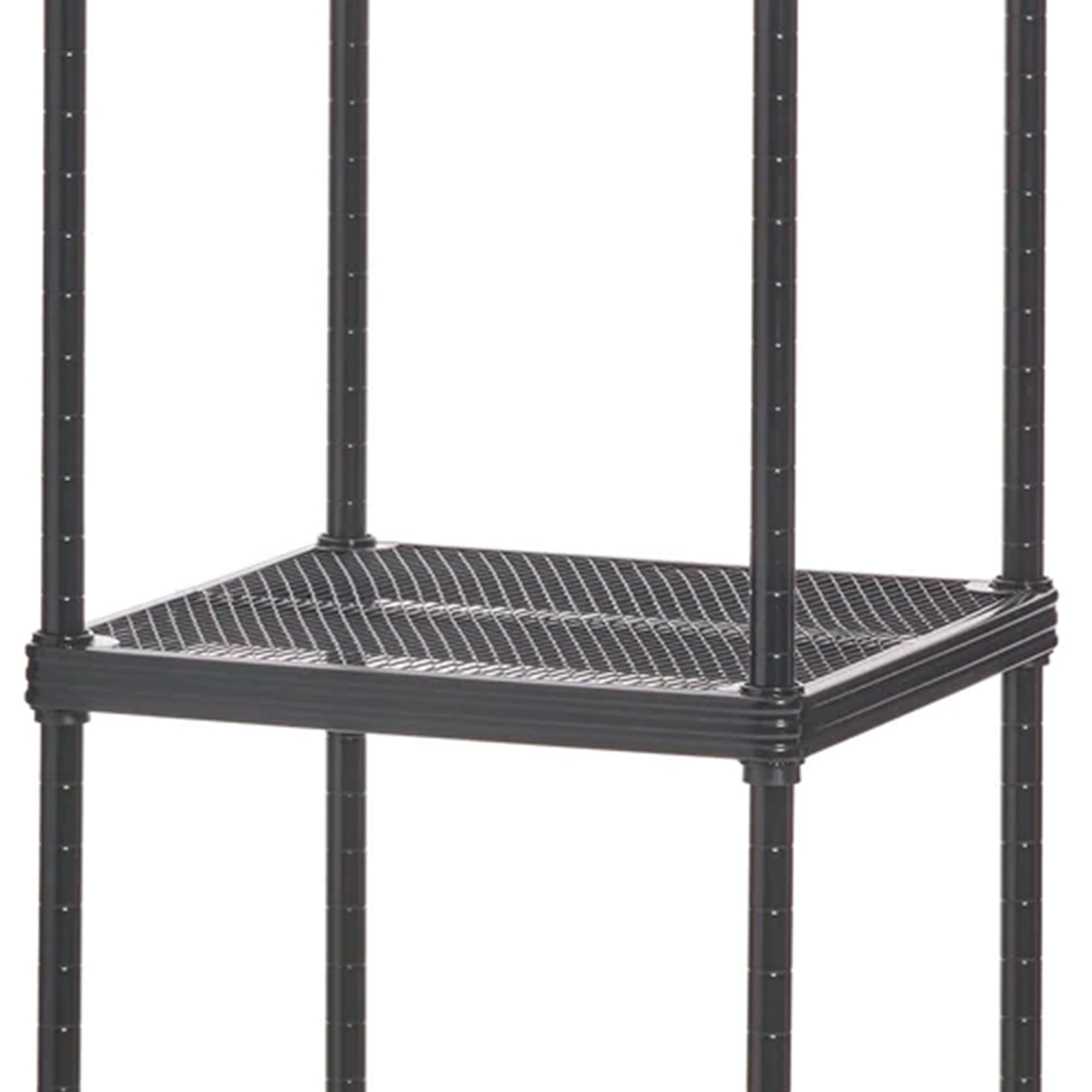 Featuring a heavy-duty steel metal mesh design and epoxy coating, each shelf from this standing shelf unit is capable of holding up to 440 pounds. With the expanded metal mesh shelving, this multipurpose display shelf rack will not let bottles, cans, or other small items fall through. The open design allows to you see your items from any angle, great for easy access. Use this shelving rack as a display for your favorite home decor, as storage for kids toys, and even for craft storage.