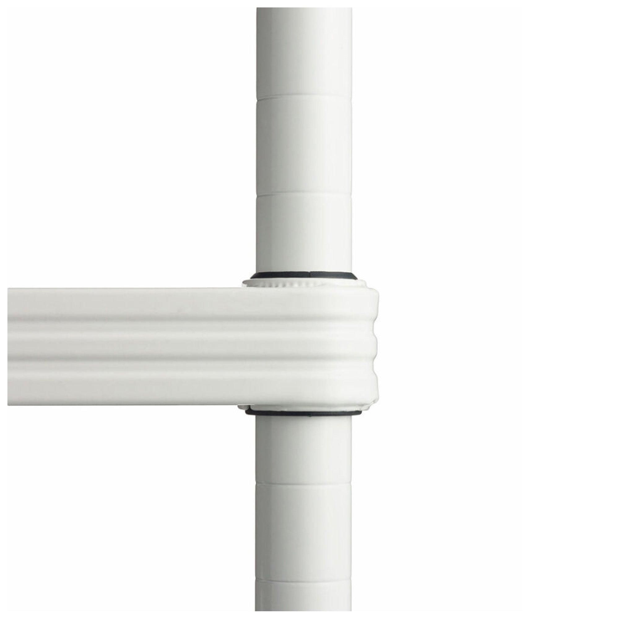 Each utility shelving rack is easy to assemble with no tools required and comes with 8 poles, 4 pole connectors, 4 leveling feet, 5 shelves 20 sets of locking clips, and assembly instructions. Achieve both functionality and a sleek, classic look in any room with the metal storage unit's thoughtful design.