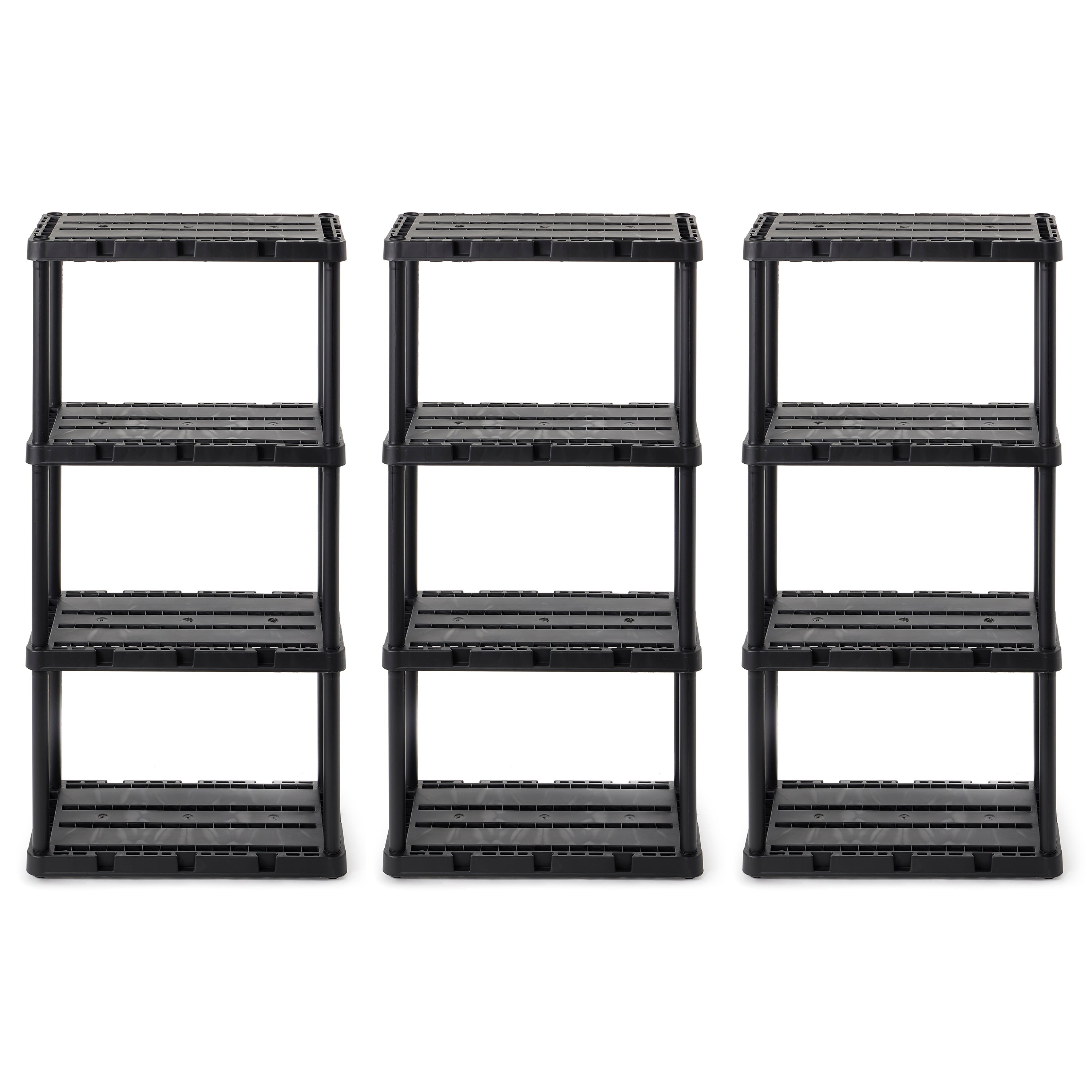 Gracious Living 4 Shelf Knect-A-Shelf Solid Light Duty Storage Unit, Black 3 Pck