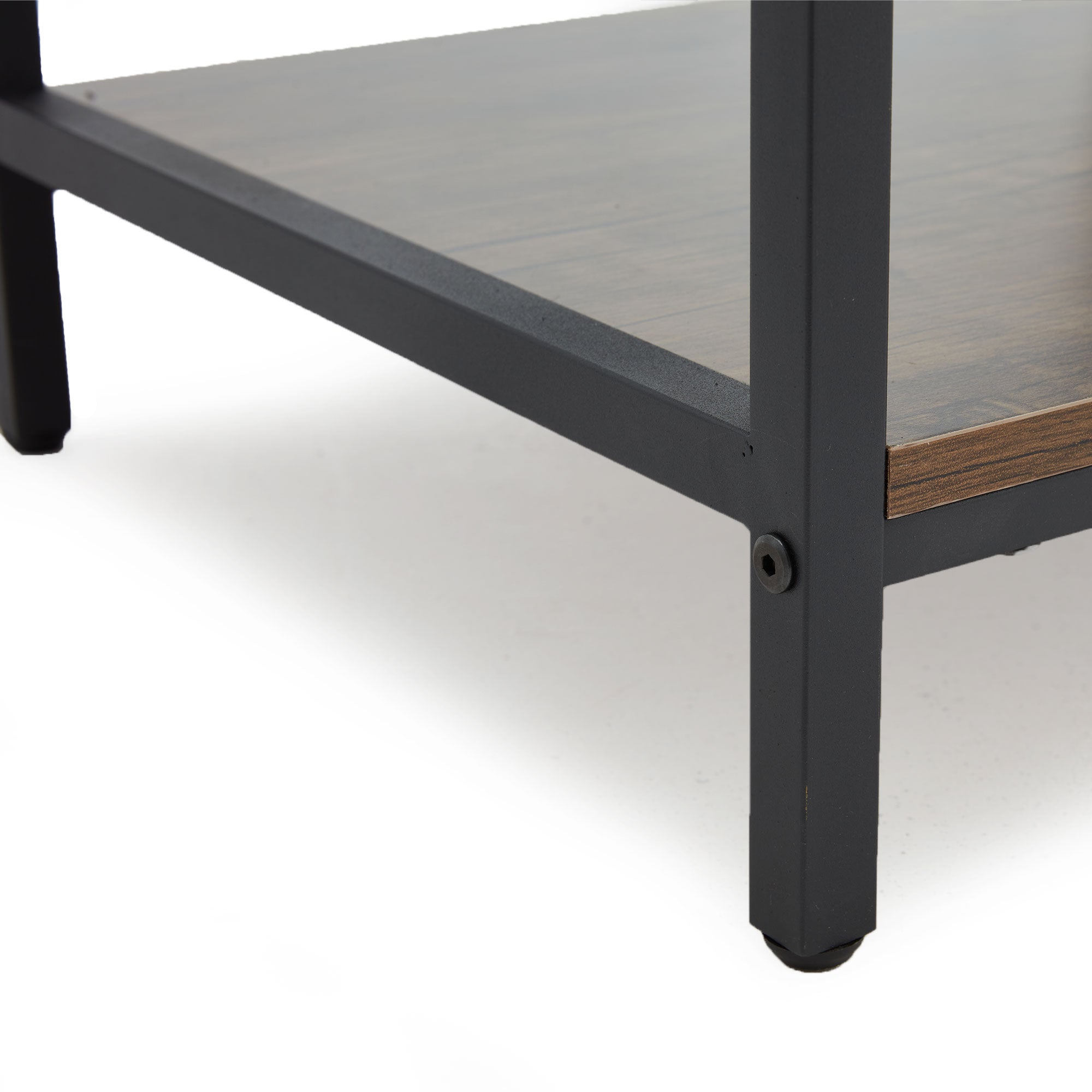 The natural gray and brown finish provides a muted industrial look that blends well with different decor styles. The shelf is equipped with rubber feet to protect your wood floor from scratching and shaking, enhancing overall stability. For added protection, a wall bracket is included in your purchase.