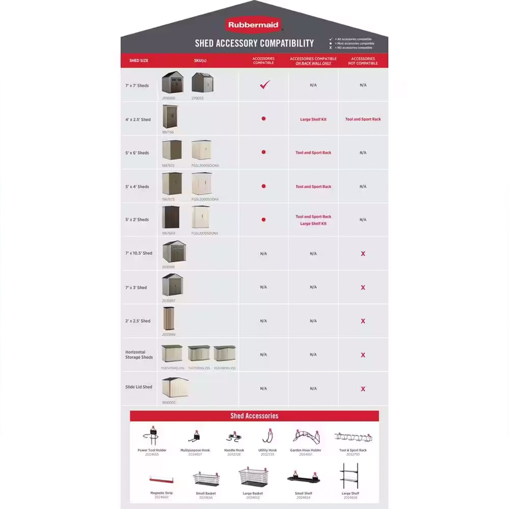- Compatible with most Rubbermaid sheds except models 1S84, 1S85, 3749, 3746