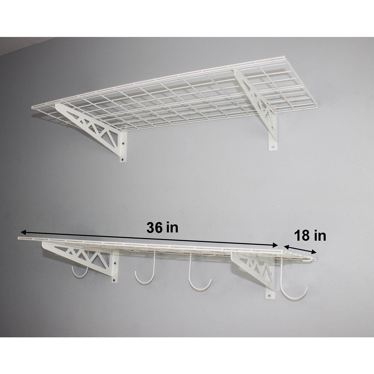 SafeRacks 18 x 36 Inch Garage Wall Shelf Two-Pack with Bike Tire Hooks, White