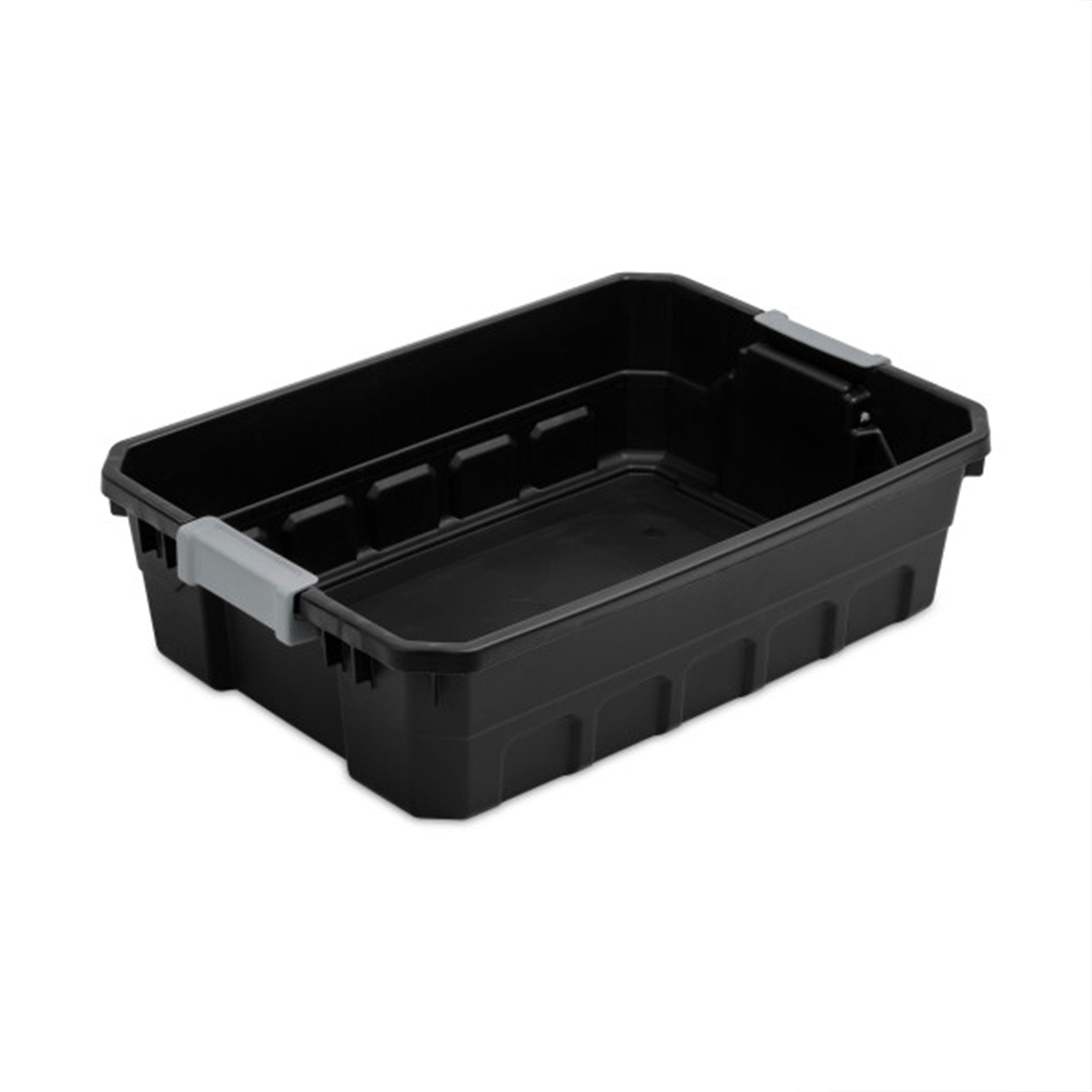 The channeled walls of these storage totes provide added strength and help to resist crushing under heavier loads. The contoured end panels create integrated handles for comfortable lifting. Robust latches securely attach the lid to the base while the textured finish provides a non-slip grip.