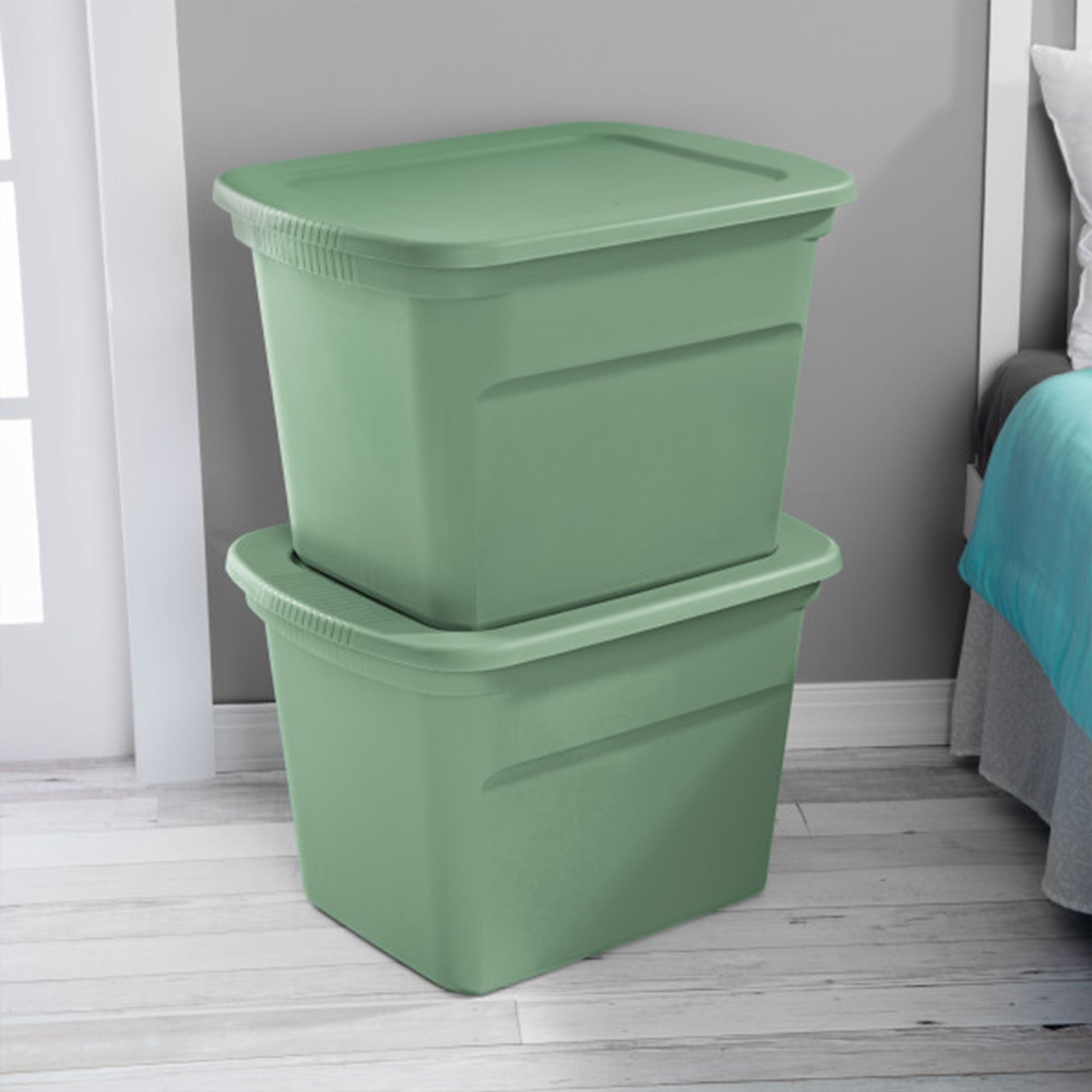 - Large 18-gallon storage totes allow for the easy organization of lightweight household goods like clothes, linens, and seasonal decorations