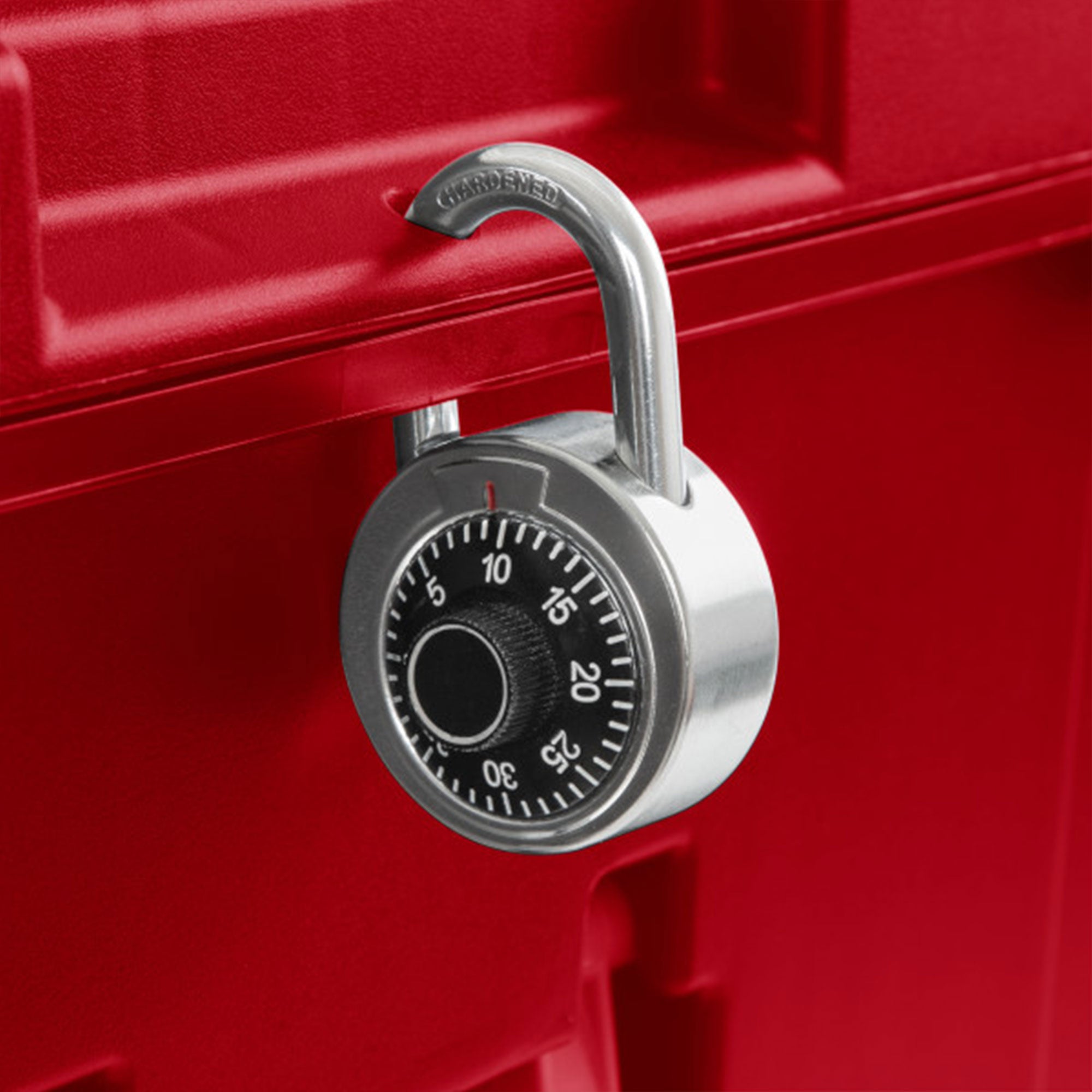 - Accepts standard-size padlock (not included) for added security and metal hinges and latches for added durability
