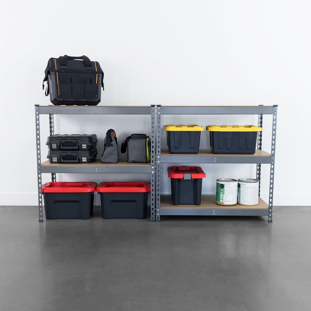 Maximize your garage storage space with our durable shelving units. Measuring 18"D x 36"W x 72"H, our shelving unit provides ample storage for all your garage essentials. Featuring customizable shelving heights and two assembly configurations, now you can optimize your space and keep everything neatly in place, from tools and equipment to household items. Stay organized and clutter-free with our versatile garage shelving.
