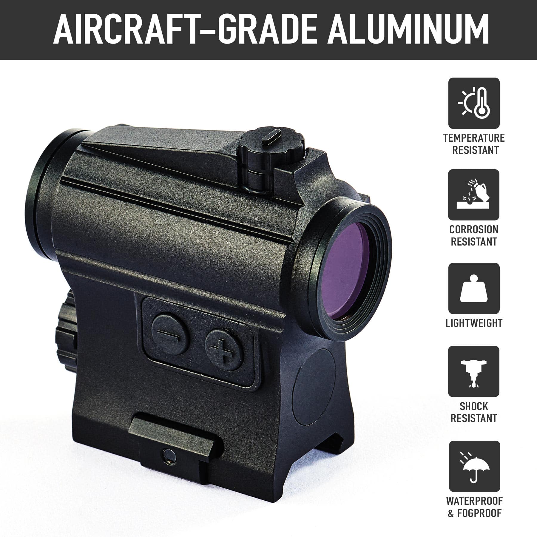 This 1x20 red dot sight with a riser mount is here to please. Knowing that the lens is the soul of every scope, offering precision ocular and objective optics with multiple coatings to provide optimal clarity and scratch resistance at all times.