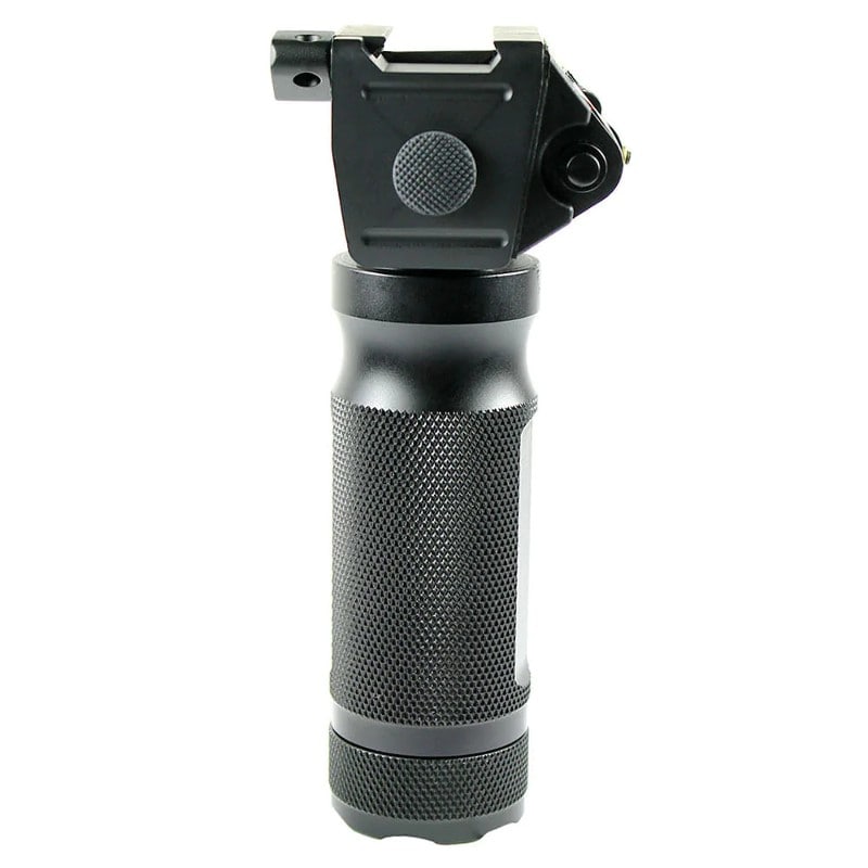 A remarkable value for one of the most in-demand AR accessories. Lightweight, all metal construction with non-slip anodized black finish and built-in CREE LED Flashlight/Strobe plus 650nm, 5mW red or green laser. A quick crossbar mounting system with a wing nut allows speedy installation and removal of the grip with no tools needed. Insane, feature packed bang for your buck at this unheard-of price. But only for a limited time!