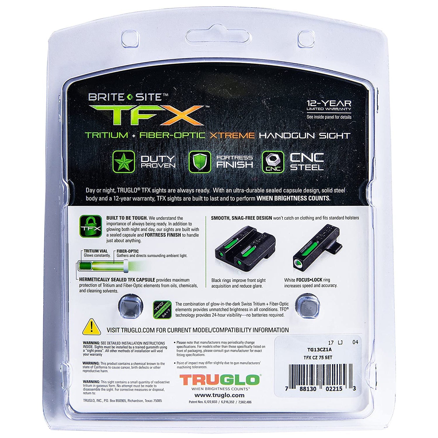 Visibility is key when you're hunting, and having the right sight tools can upgrade your whole experience. The TruGlo TFK Fiber Optic Sight Set is designed with fiber-optics and tritium technology to provide the brightest aiming points and excellent visibility whether your shooting in daylight or low light settings. This TG13CZ1A model was designed to be compatible with CZ 75 model handguns.