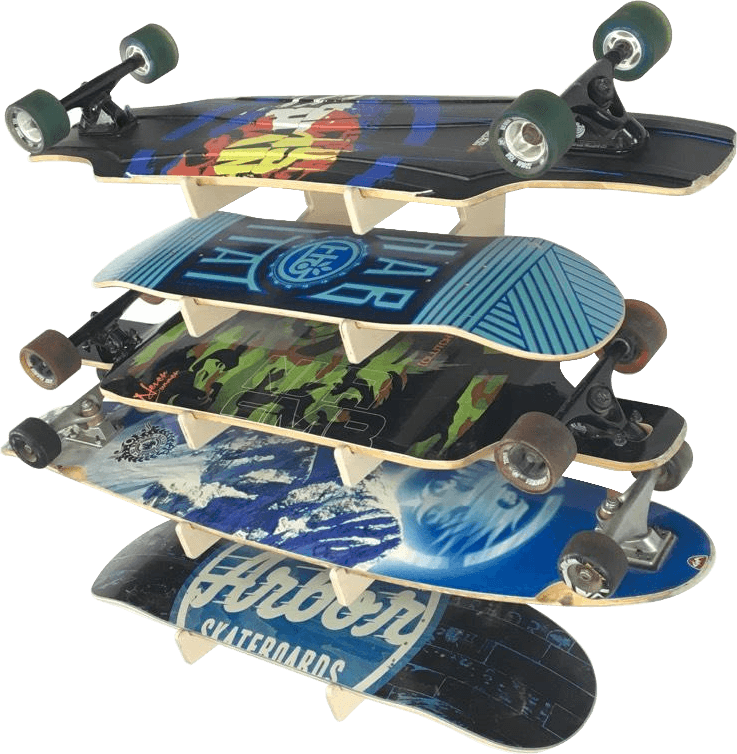 The Showcase skateboard and longboard wall rack is the real deal! If you have a collection of skateboards or longboards this rack is for you. Accessory hook at the bottom is available for helmets, gloves, jackets, or any other gear you want to hang. This rack makes your boards looks great and holds them at an angle so you can see the art work. Mounting is super easy and the brackets are adjustable so you can set them to your desired width.