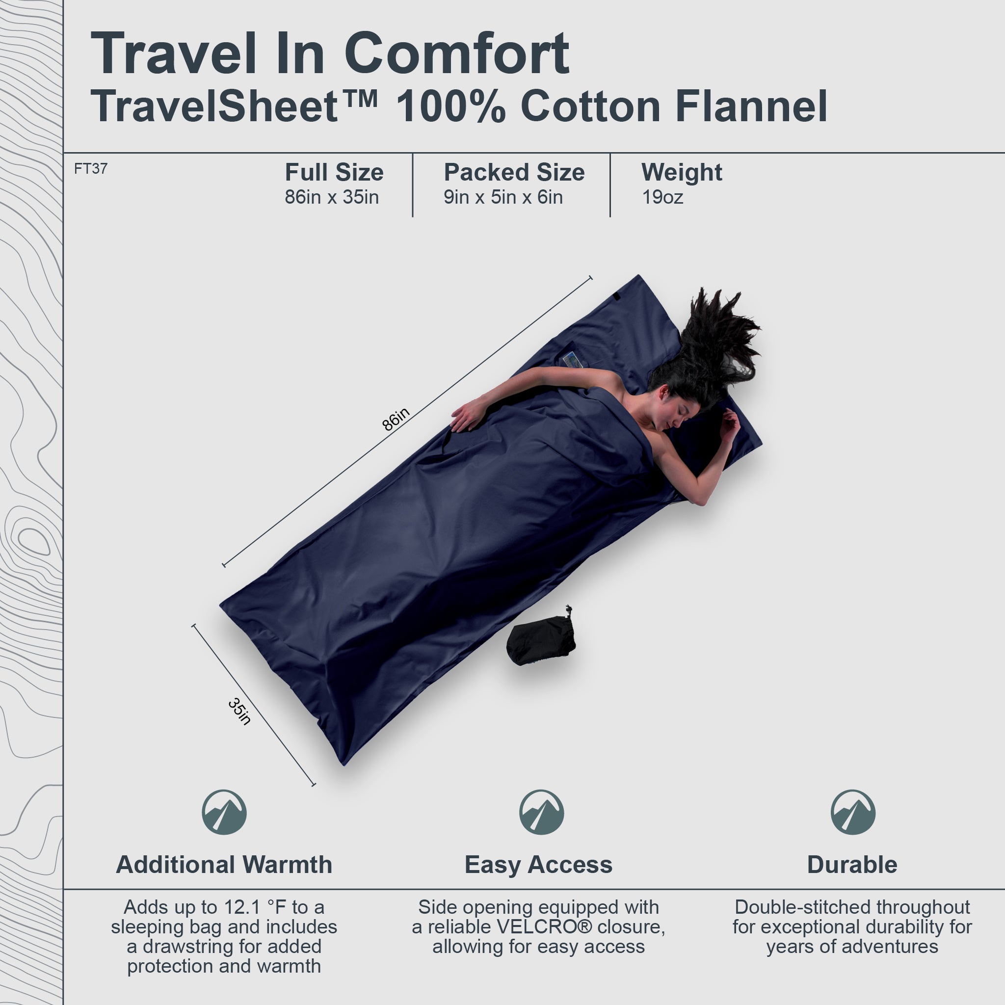 Don't compromise on comfort during your travels. Upgrade to the TravelSheet™ - 100% Cotton Flannel and enjoy the luxury of extra warmth and softness wherever you go. Experience the ultimate in travel comfort and style.