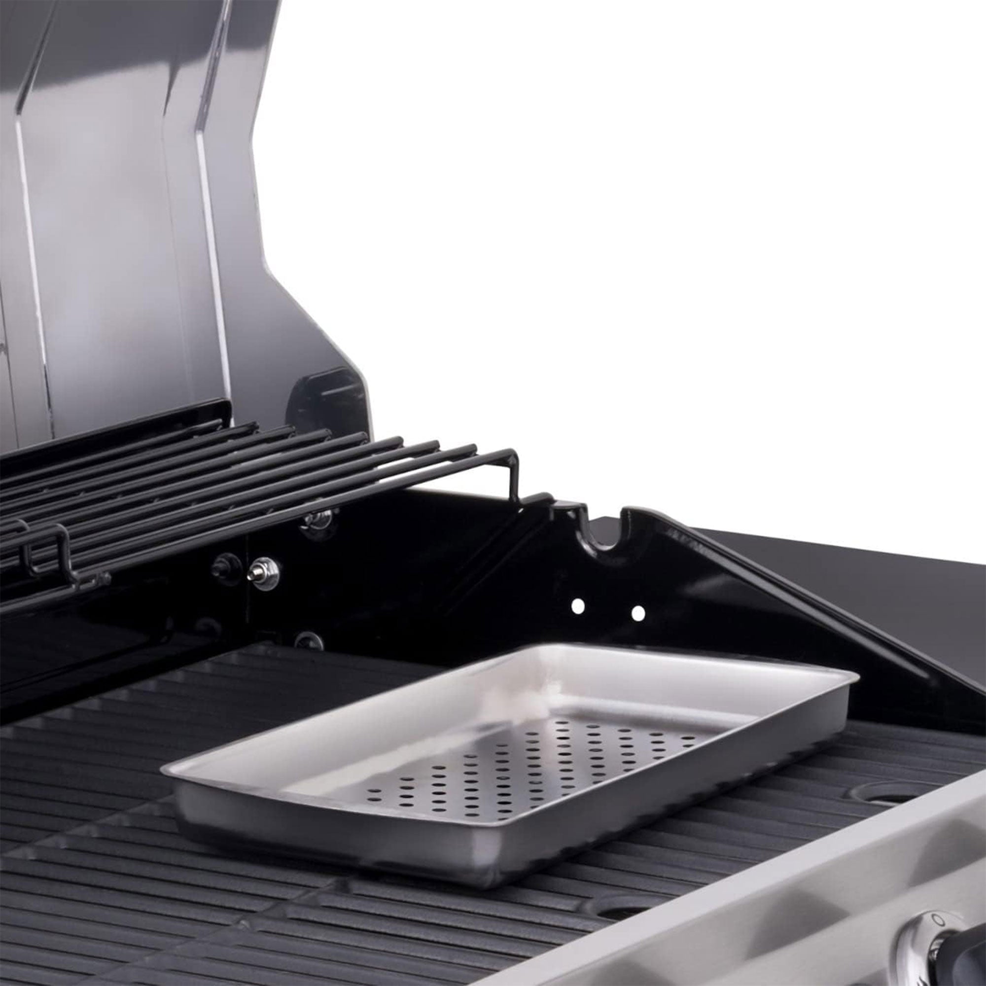 This gas grill is practical and aesthetically pleasing with its stainless steel finish. This char-broil gas grill can cater to a large crowd and is perfect for garden parties, barbeques, and family gatherings. The charbroil grill comes with a side burner, providing an additional cooking area for side dishes or sauces. This feature-rich gas grill includes a griddle, allowing versatility in your cooking options. Despite its robust construction, the bbq grill is easy to assemble and can be delivered right to your doorstep.