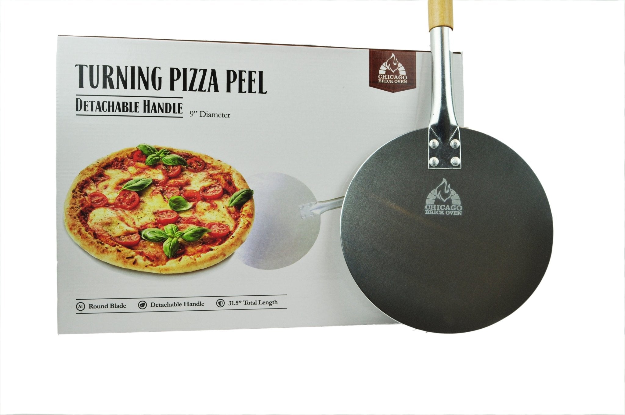 Chicago Brick Oven Aluminum Pizza Peel - Turning Pizza Paddle with Leather Strap and Detachable Wood Handle - Bakeware & Pizza Oven Accessories - 9 in