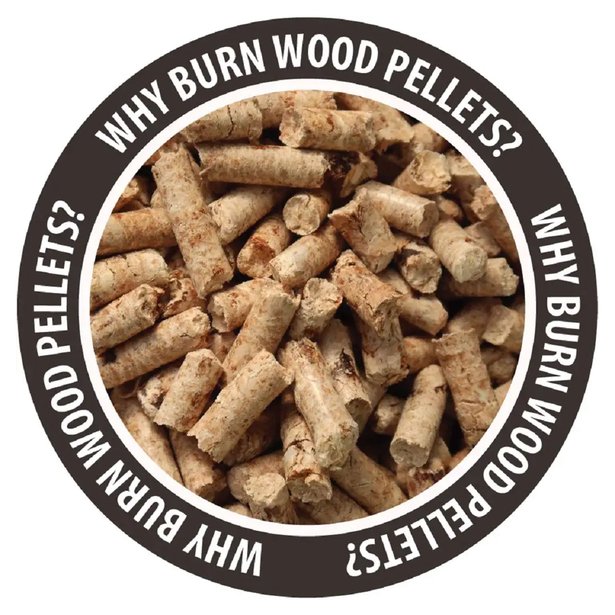 - Burns wood pellets and produces minimal ash using a gravitational afterburner system that minimizes smoke and mess