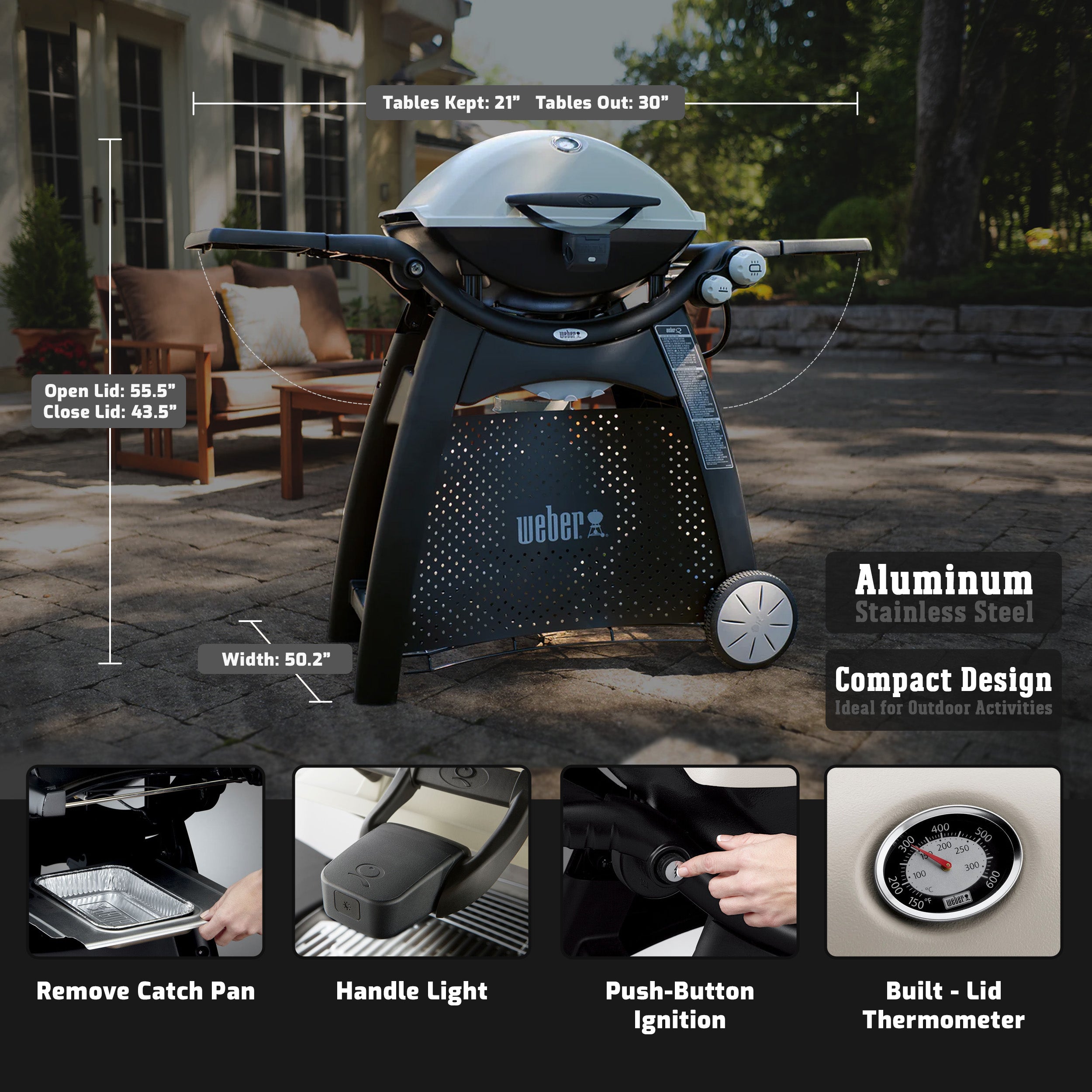 Weber Q3200 Aluminum Lid Portable 21,700 BTU Compact Natural Gas Grill, Titanium