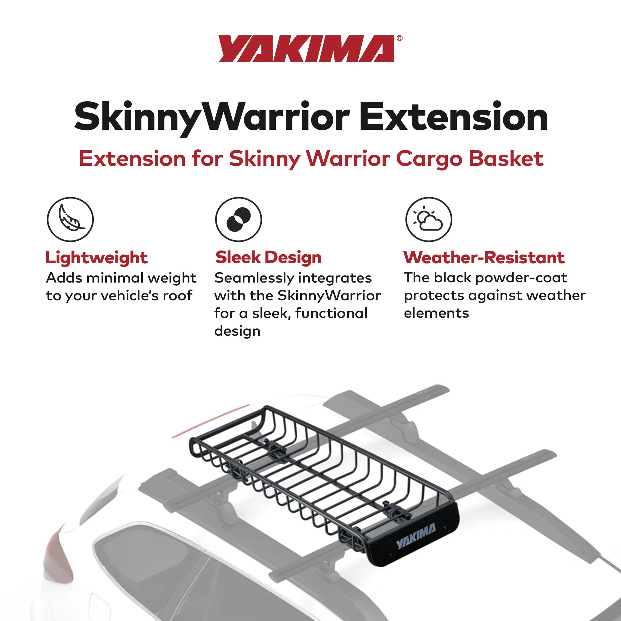 - Expand your SkinnyWarrior's cargo capacity by 28 percent with the Yakima SkinnyWarrior 16-Inch Extension for Long and Narrow Cargo Basket