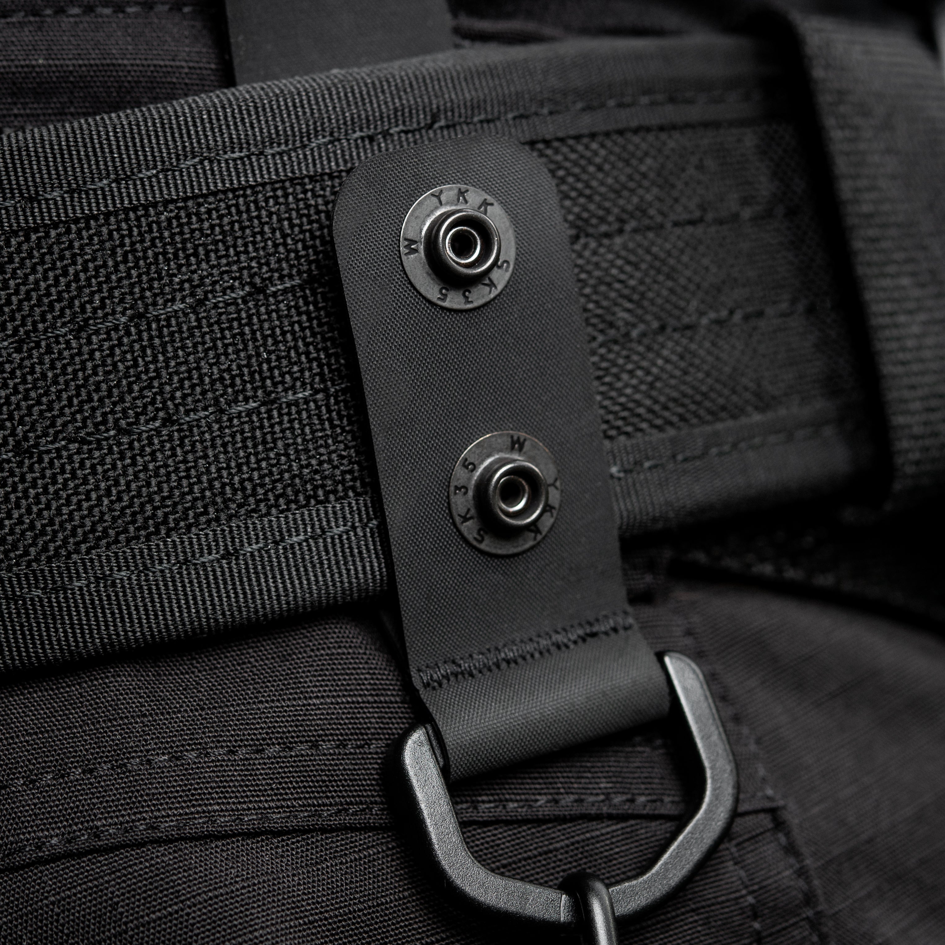 For the convenience of placing equipment on a tactical belt, the M-Tac brand has developed a very useful accessory - a set of mounts for a tactical belt. The set consists of two identical fasteners. Hypalon is a chlorosulfonated polyethylene (CSPE) synthetic rubber that is resistant to chemicals, extreme temperatures and UV. The design of the mount is ingenious in its simplicity. It is a sling 5.5" long and 1" wide. You can fasten the fastener with both buttons - then its girth will be enough to connect two standard-width belts (up to 21.6" wide). You can move the edge of the attachment and fasten it with 1 button (YKK) - this option will make it possible to connect a standard trouser belt with a wider belt (up to 2.7" wide). From below, each mount is equipped with a D-ring. It can be used both for hanging small tactical equipment (using carabiners, etc.) The same goes for attaching a safety cord.