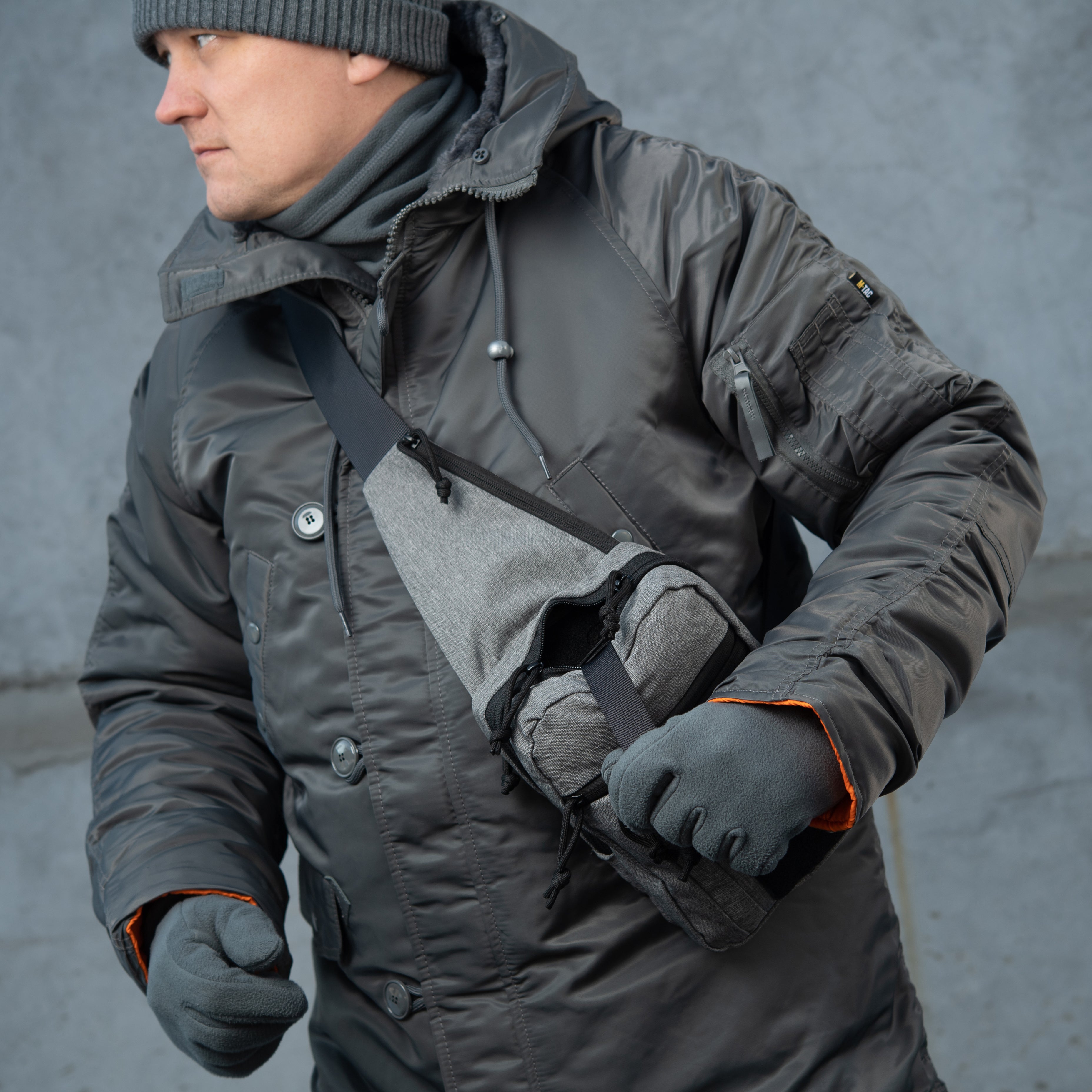 The M-Tac shoulder holster bag is designed for concealed carrying of a weapon. The holster is installed inside the bag. This holster is compatible with most types of handguns. The special strap allows the bag to be easily and quickly opened to remove the weapon. The bag is equipped with a convenient adjustable shoulder strap. The tactical shoulder bag sling chest pack has five additional compartments for storing personal belongings, allowing unloading the pockets of pants, shirts, jackets, or shorts.
