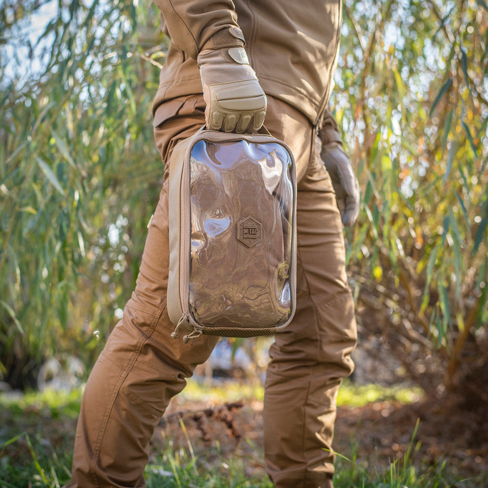 The transparent utility organizer Elite Large (12 x 7.5 inches) Gen. II from M-Tac will keep your belongings organized and secure. Suitable for transporting an EDC kit, weapon accessories, medicines, and other necessary supplies. Made of Cordura 500D, a durable, wear-resistant material keeps its shape perfectly and doesn't deform when is wet. The front wall of the organizer is made of transparent PVC sheeting, which helps identify the desired item quickly. The inner loop platform of the organizer allows you to attach modular inserts. The special mesh is provided at the bottom, which acts as a drainage eyelet and ensures good air circulation. The zipper is additionally equipped with two reflective lanyards. The MIL-STD webbing handle is designed for the convenient use of the organizer.
