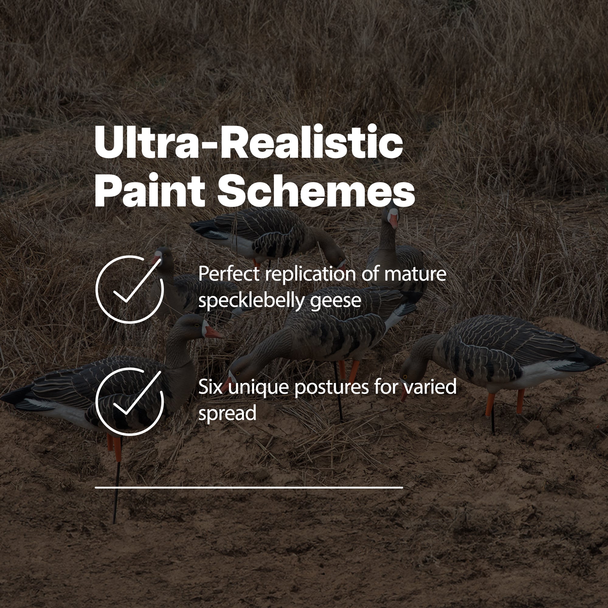 - Developed through hundreds of research hours to deliver precise body and head postures that mimic the subtle details needed to deceive wise, late-season Specklebelly geese
