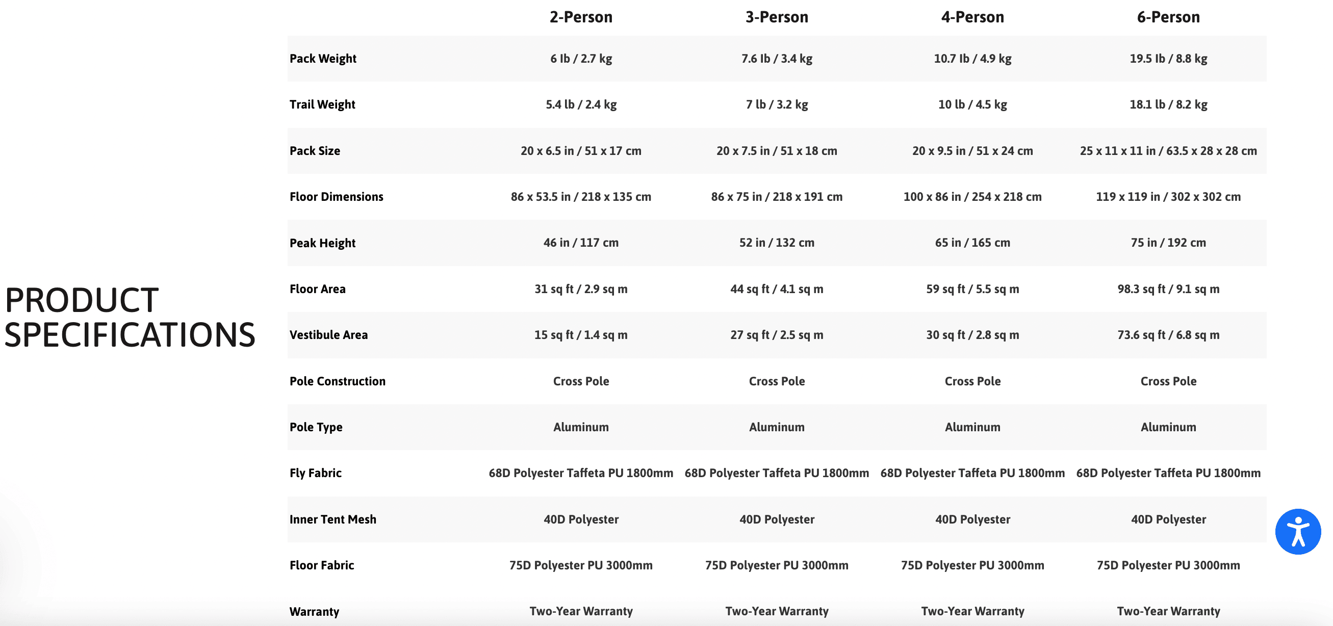 - Rectangular freestanding tent design allows for multiple sleeping configurations