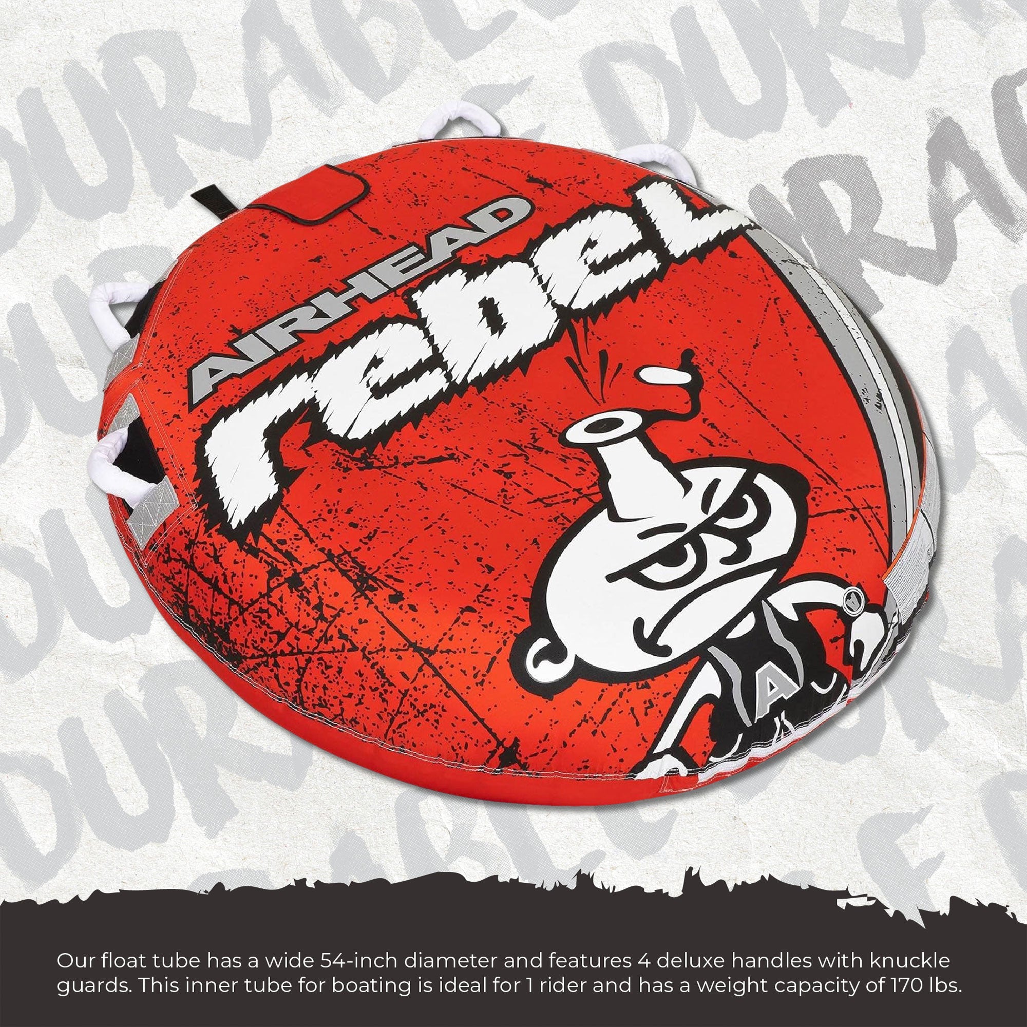 - Tube features 4 deluxe handles with knuckle guards and a 54-inch diameter ideal for 1 rider