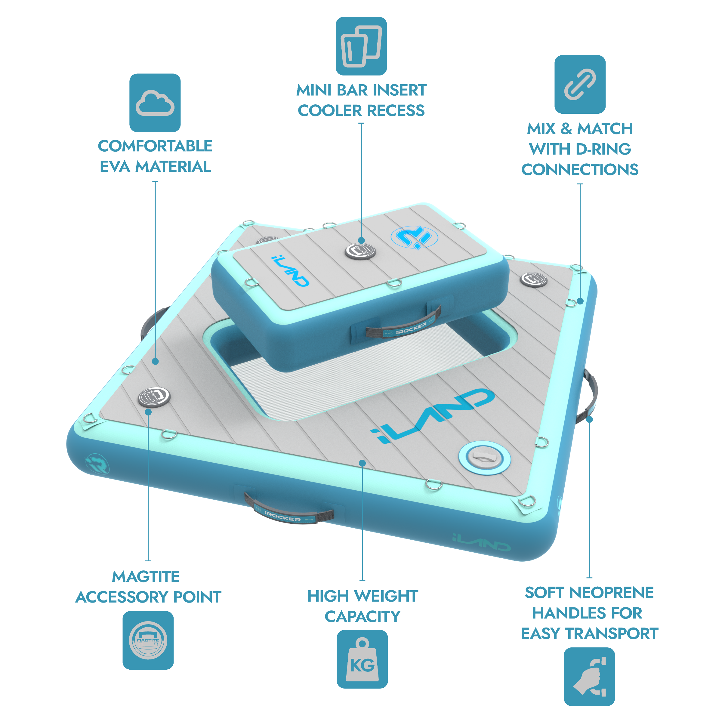 All iLAND® products are designed to mix, match, and connect—so you can build your perfect on-the-water setup. Whether you’re starting small or going big, each float works seamlessly and connects with our full lineup of iLAND® floats. Customize your float. Expand your crew. Create your own floating paradise.