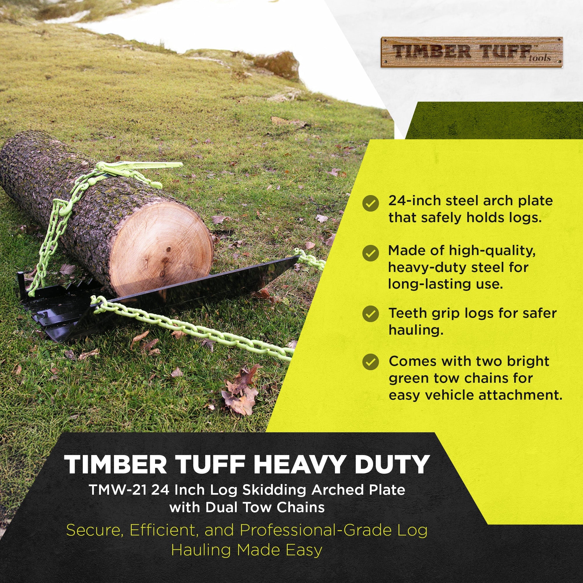 Haul and transport logs quickly and safely with the Timber Tuff TMW-21 24 Inch Log Skidding Arched Plate with Dual Tow Chains.