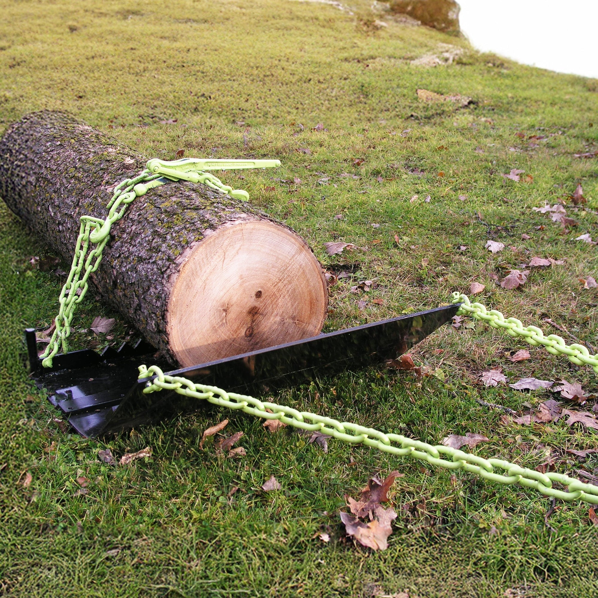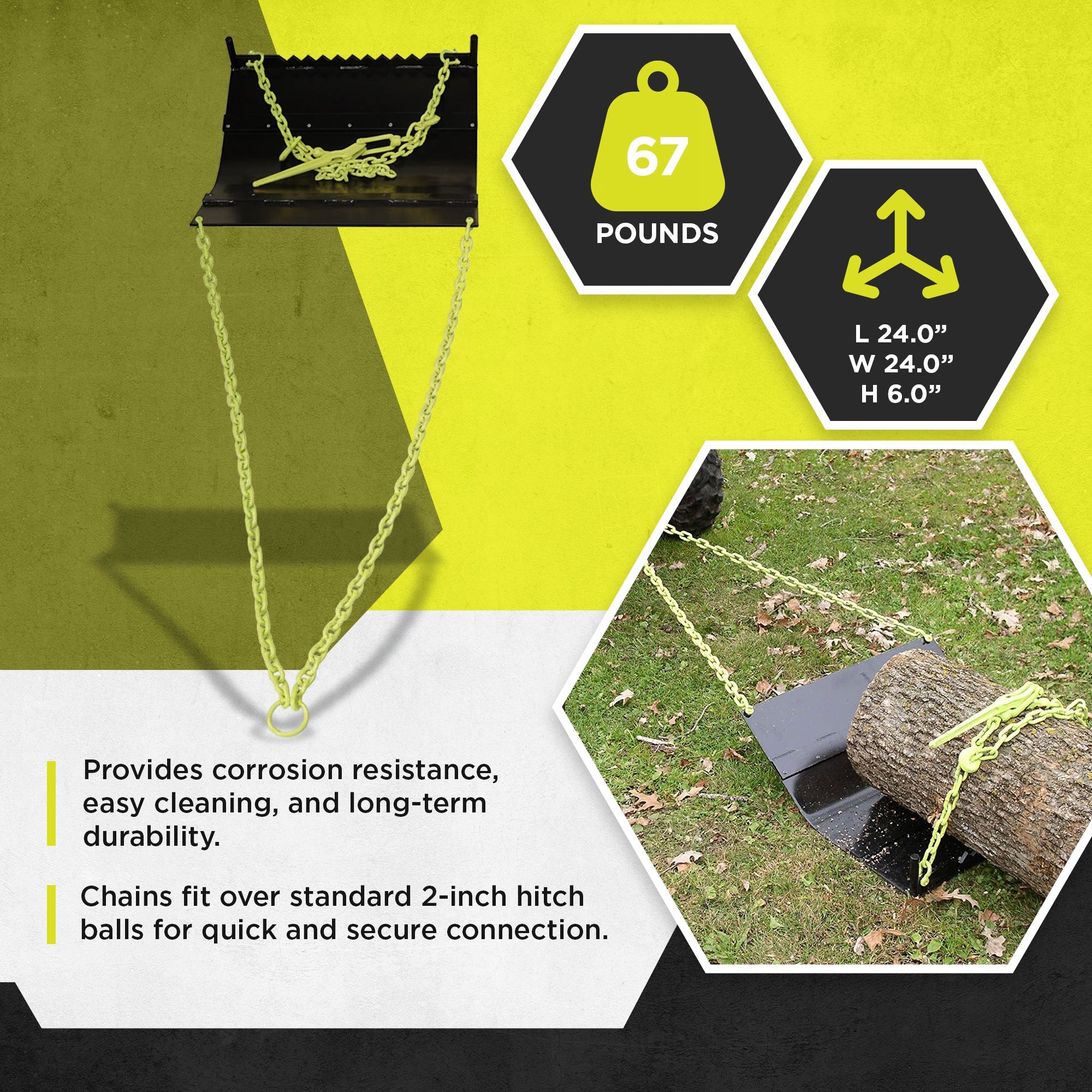 Attach the skidding plate to your tow-capable vehicle with ease using the dual tow chains with a durable ring that can slide over 2-inch hitch balls. The bright green chains increase visibility and safety during wood hauling and transporting and ensure you won't lose or misplace the chain or plate in densely wooded areas.