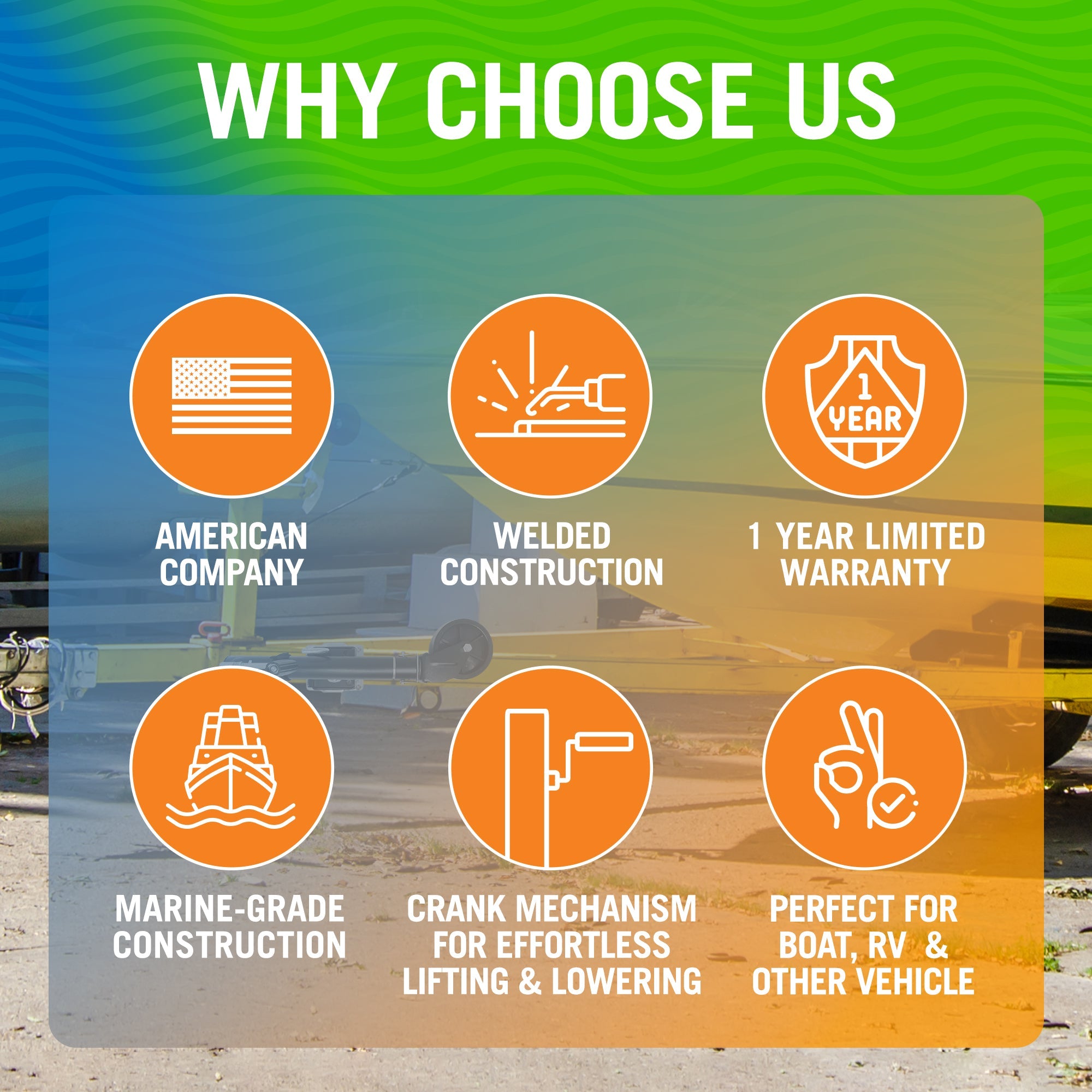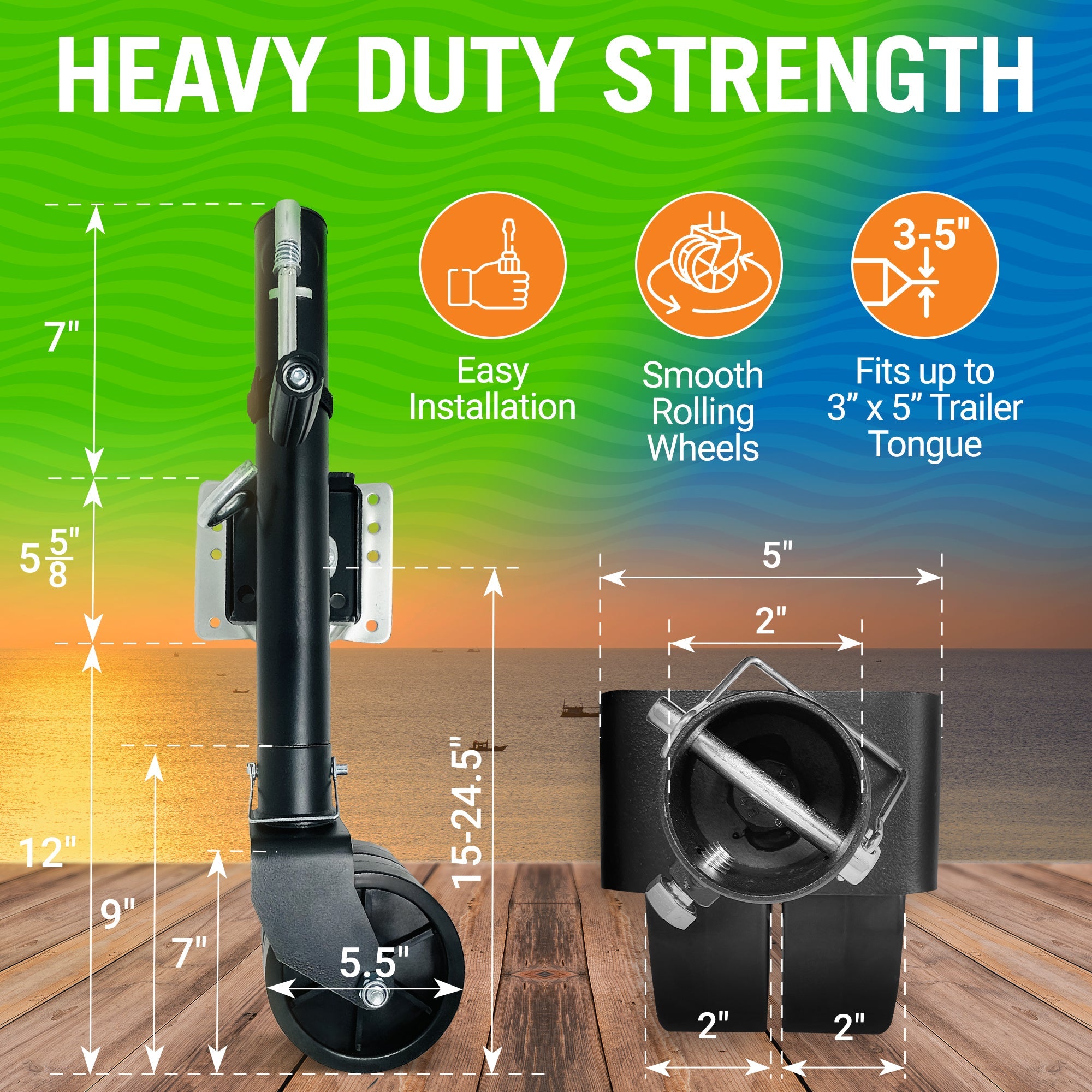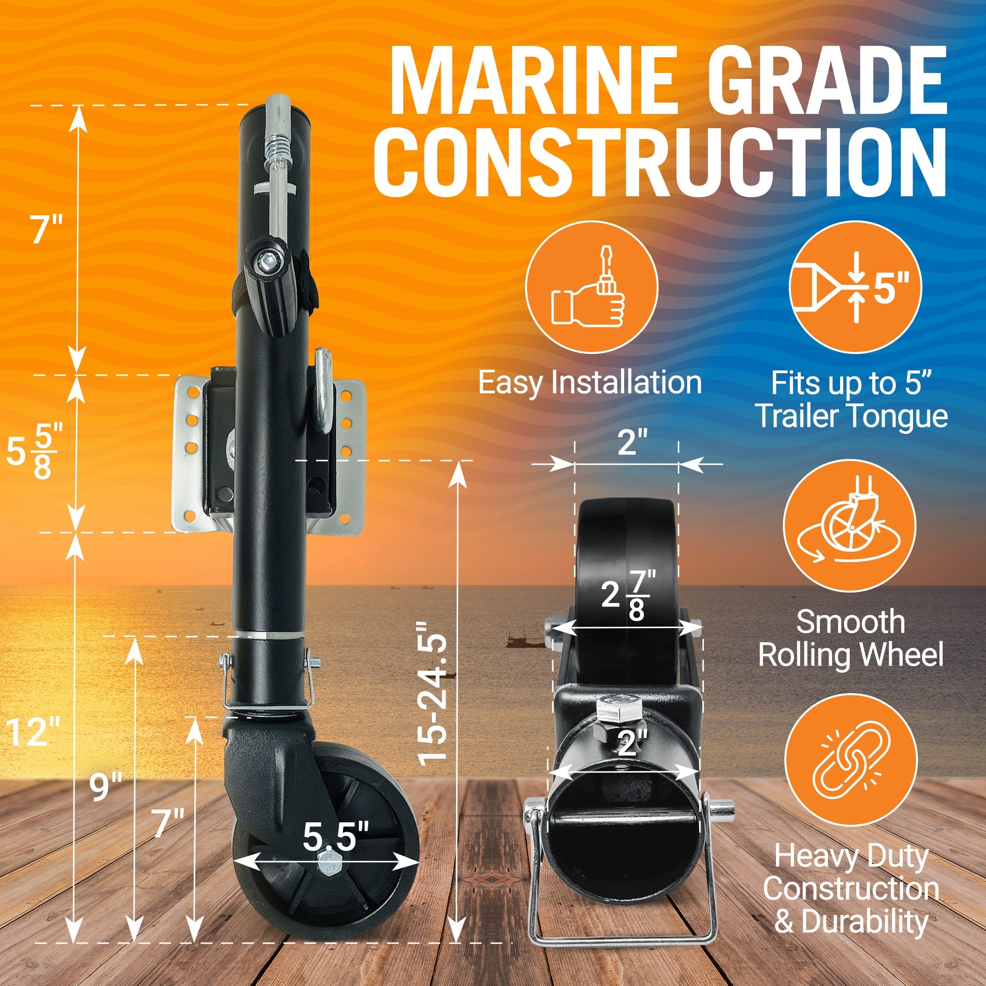 • BUILT TO LAST: Crafted for extreme conditions, our boat trailer jack with wheel boasts a corrosion-resistant coating and robust construction. Its durability ensures long-term use through many seasons, thanks to heavy-duty materials and solid welding.
