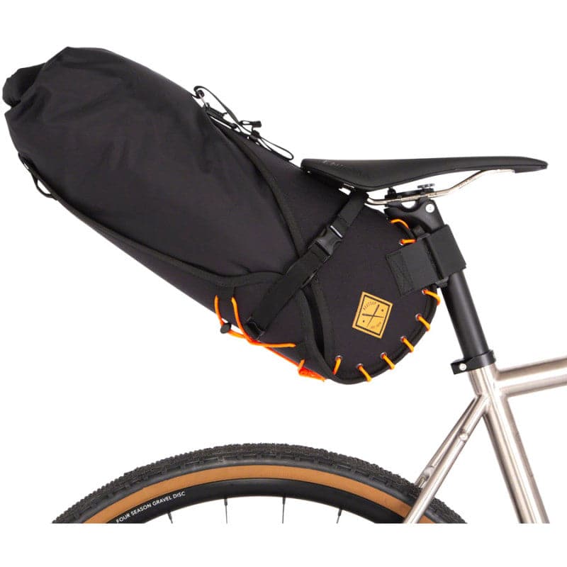 Part of the Restrap's #carryeverything range, the rackless saddle bag connects securely to your seatpost for bike packing, touring or commuting. With no mounts or screws, the bag attaches in seconds to any bike. The holster fits up to a 14 litre dry bag and is secured with a patented magnetic buckle that’s easy to adjust, even while wearing gloves. The bag is hardcase for easy loading and is fastened with reflective military paracord and reinforced eyelets. Made from textured nylon and with nylon webbing for extra strength, this product is made to last.