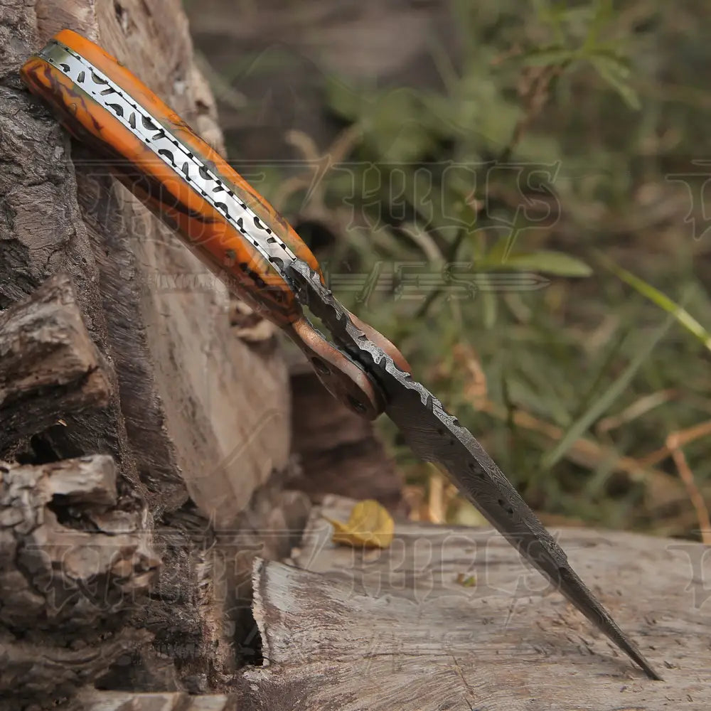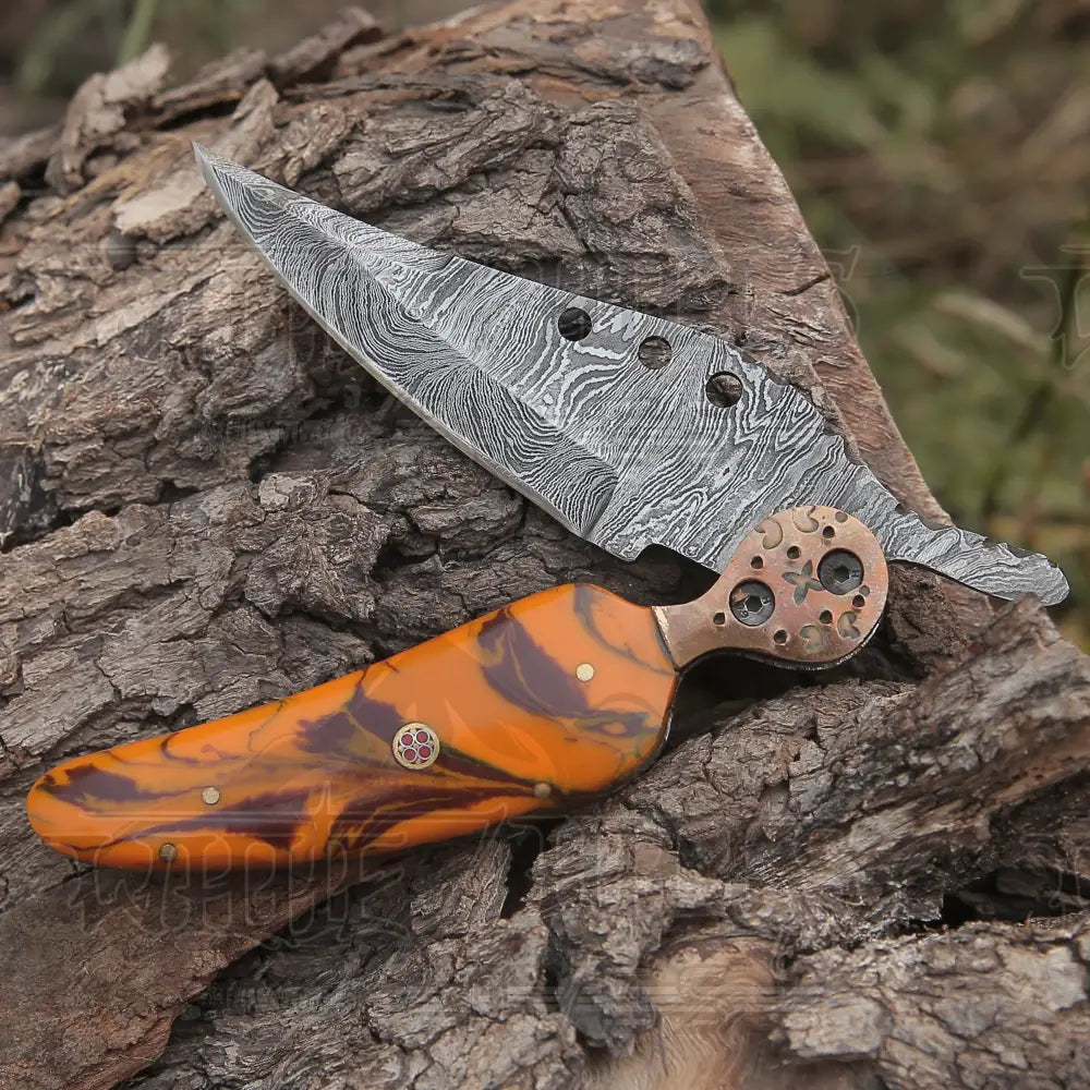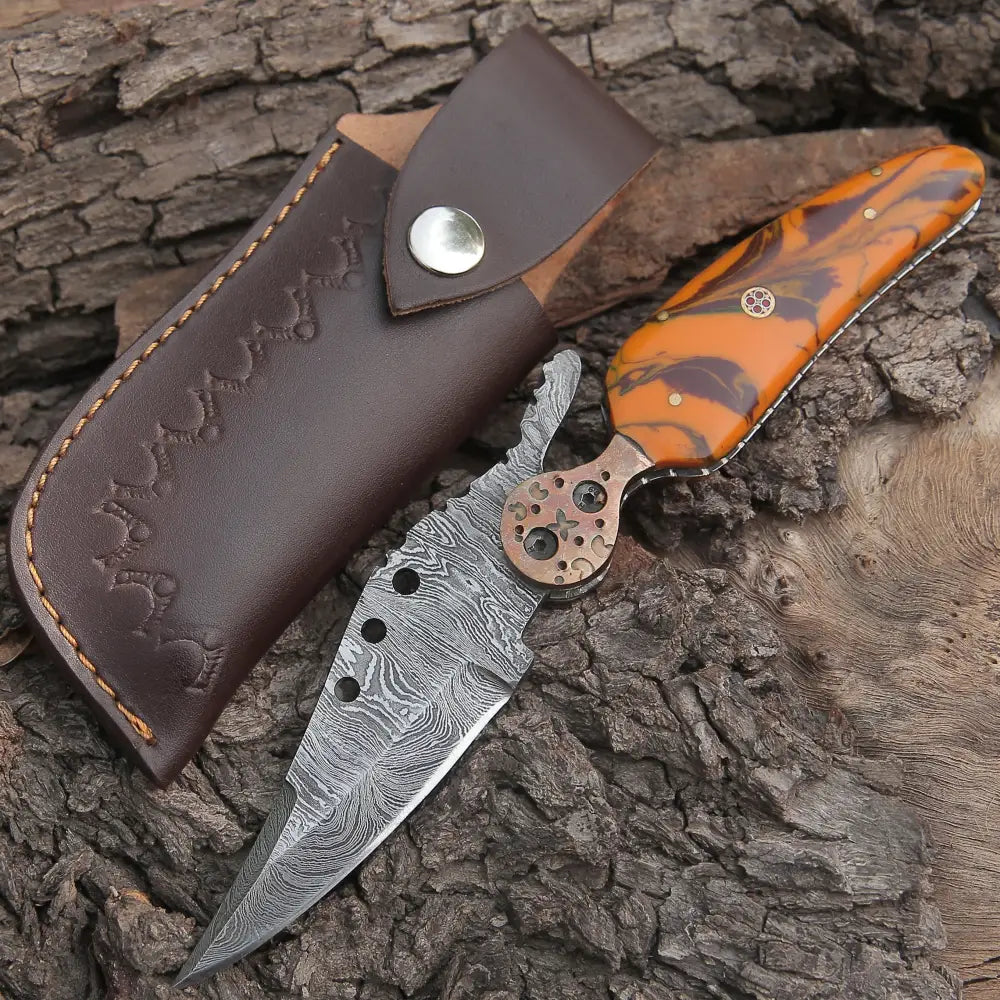 Custom Handmade Damascus Steel Pocket Knife Folding Blade With Resin Handle WH 3821