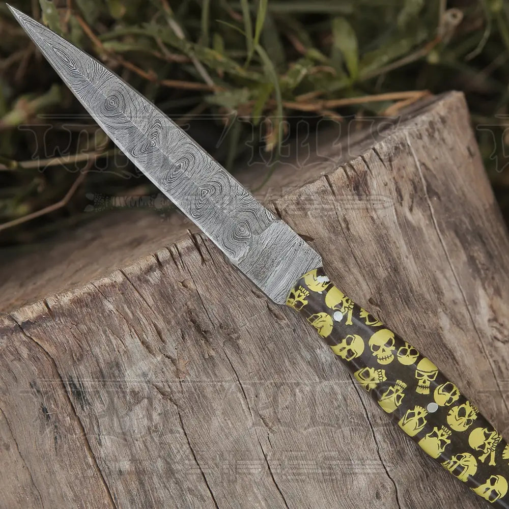 HANDMADE DAMASCUS STEEL DAGGER KNIFE - 10" FULL TANG KNIFE - Yellow Skull Resin Handle