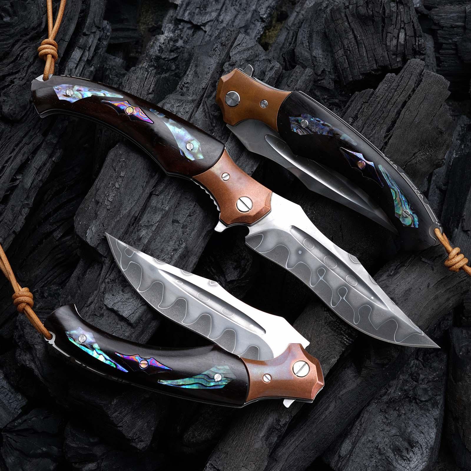 The elegant handle is made using exotic ebony wood & abalone shell scales. It has been sealed to prevent cracking or drying and preserve the handle for lifetime comes with under lock folding mechanism.