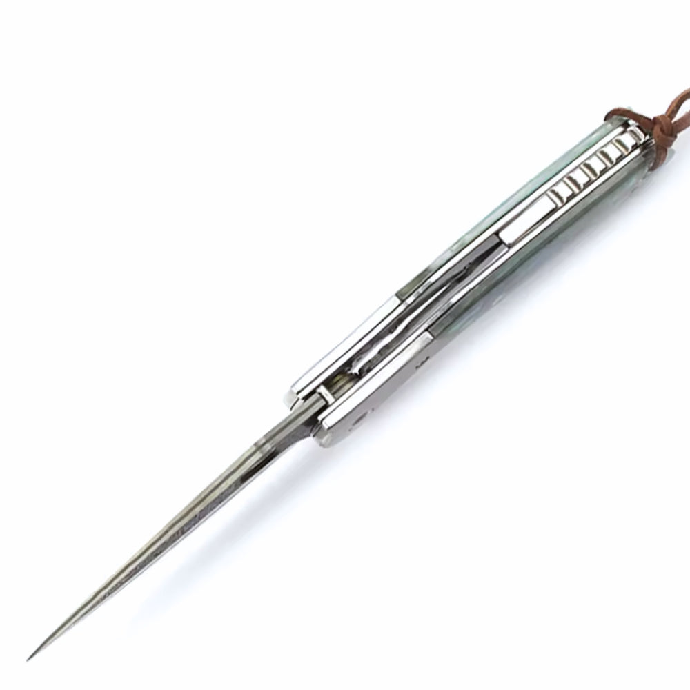 The elegant handle is made using abalone shell scales. It has been sealed to prevent cracking or drying and preserve the handle for lifetime comes with under lock ball bearing folding mechanism.