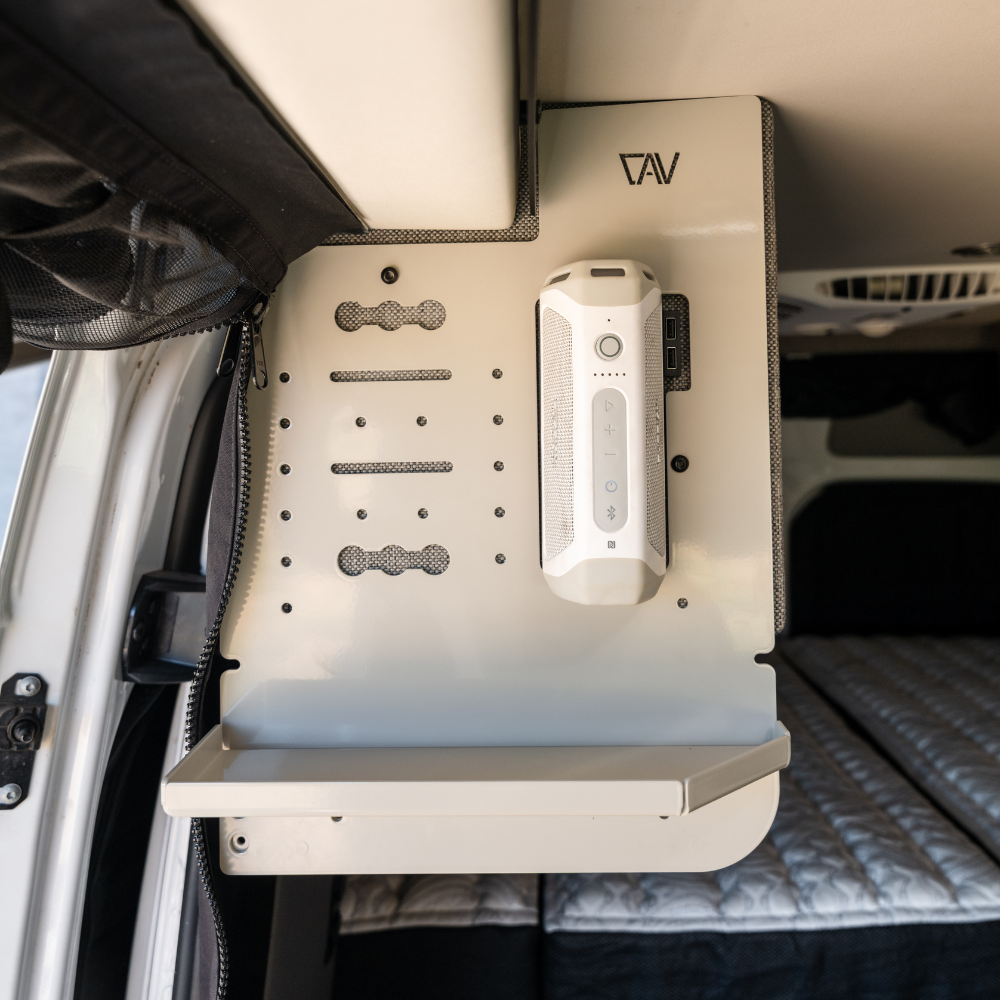 The Canyon Adventure Vans Pro Series Kitchen Caddy features a premium 1/8" powder-coated aluminum frame designed to securely mount your accessories and elevate your galley space. Crafted with durability and versatility in mind, this caddy integrates flawlessly with your Storyteller setup.
