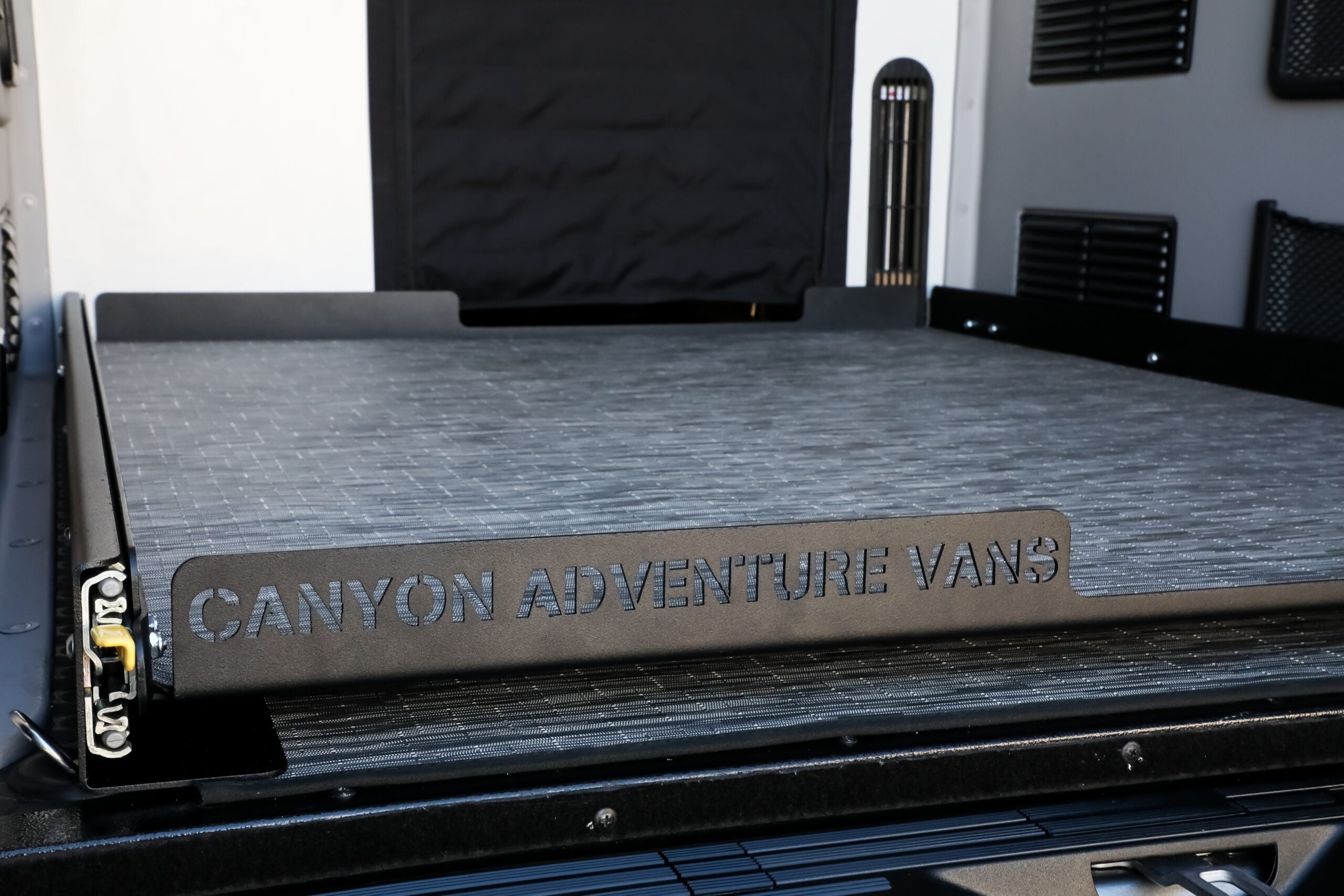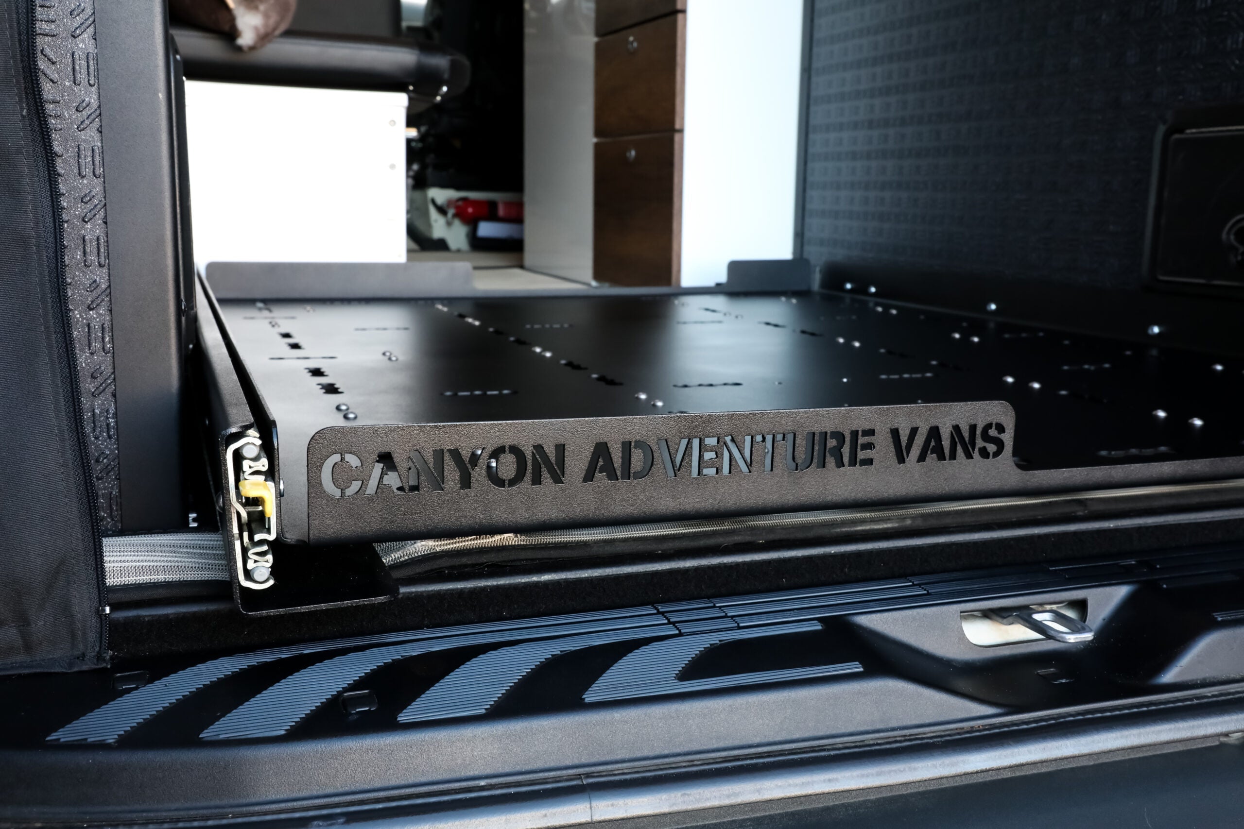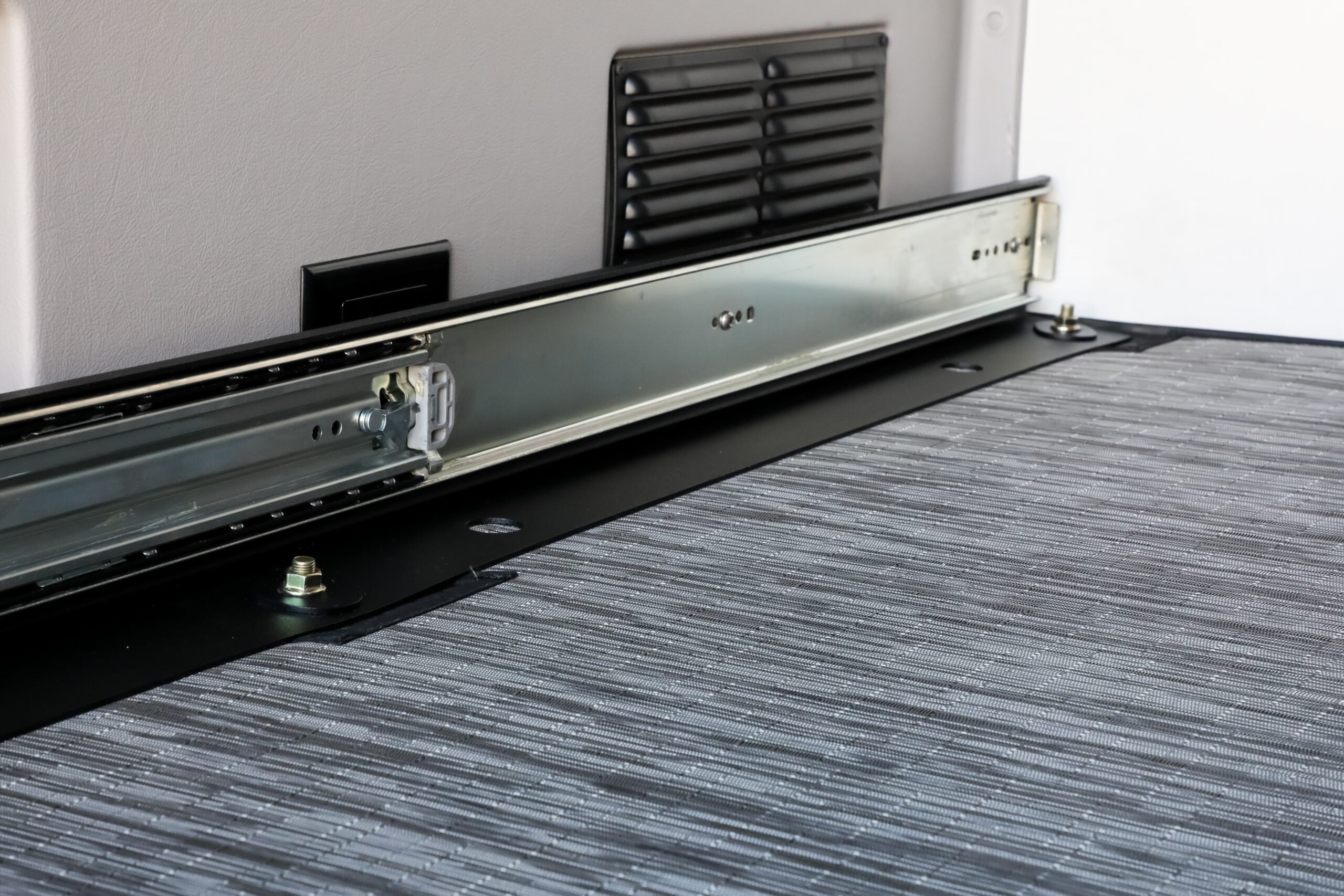 Our signature Garage Slide-Out Deck is much more than your typical cargo tray. It holds all of your gear and more. Our L-Track holes allow you to easily fasten down your gear and secure everything without sliding around.