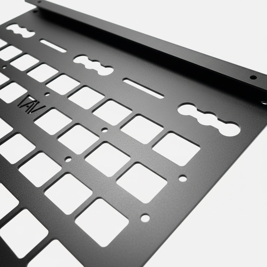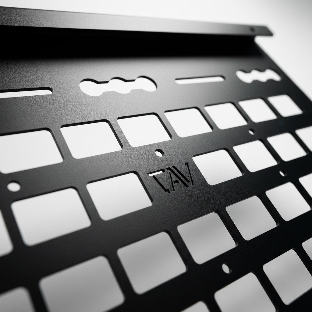 Organize gear inside your Owl Vans Rear Storage Box with this lightweight molle panel. Made from durable 1/8-inch aluminum, it slips over the shelf for tool-free installation. Compatible with any Owl box featuring a shelf.
