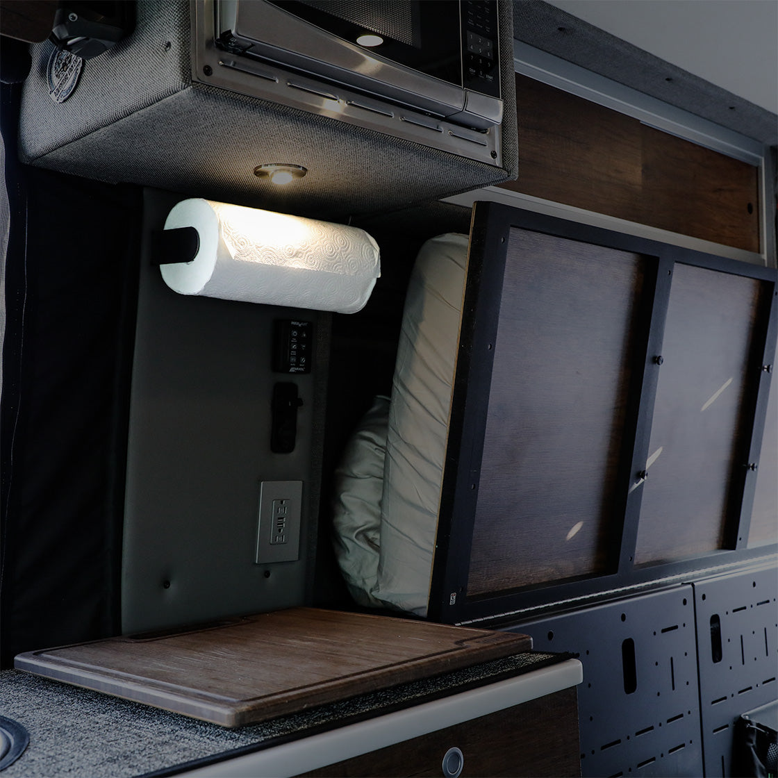 Paper Towel Holder for StoryTeller Overland Mode Vans or Winnebago Revel. This is the perfect paper towel holder for the Storyteller Mode.