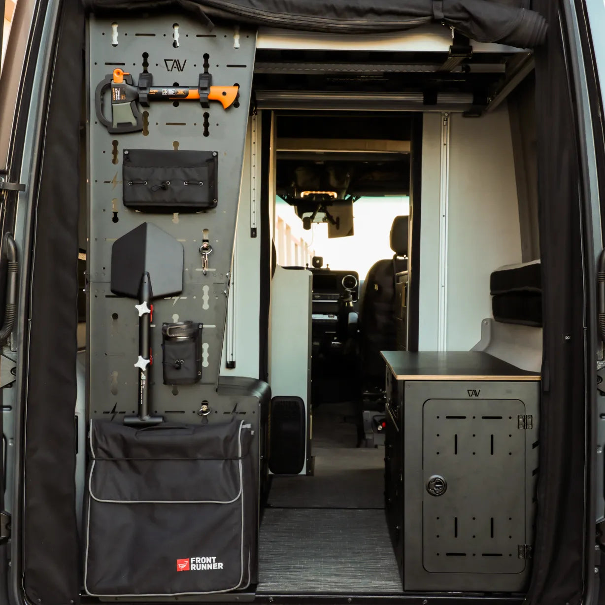 Never worry about losing space in your adventure van again with the Store your gear inside the van, making it easily accessible when the rear doors are open. Maximize storage without sacrificing valuable space in your van.