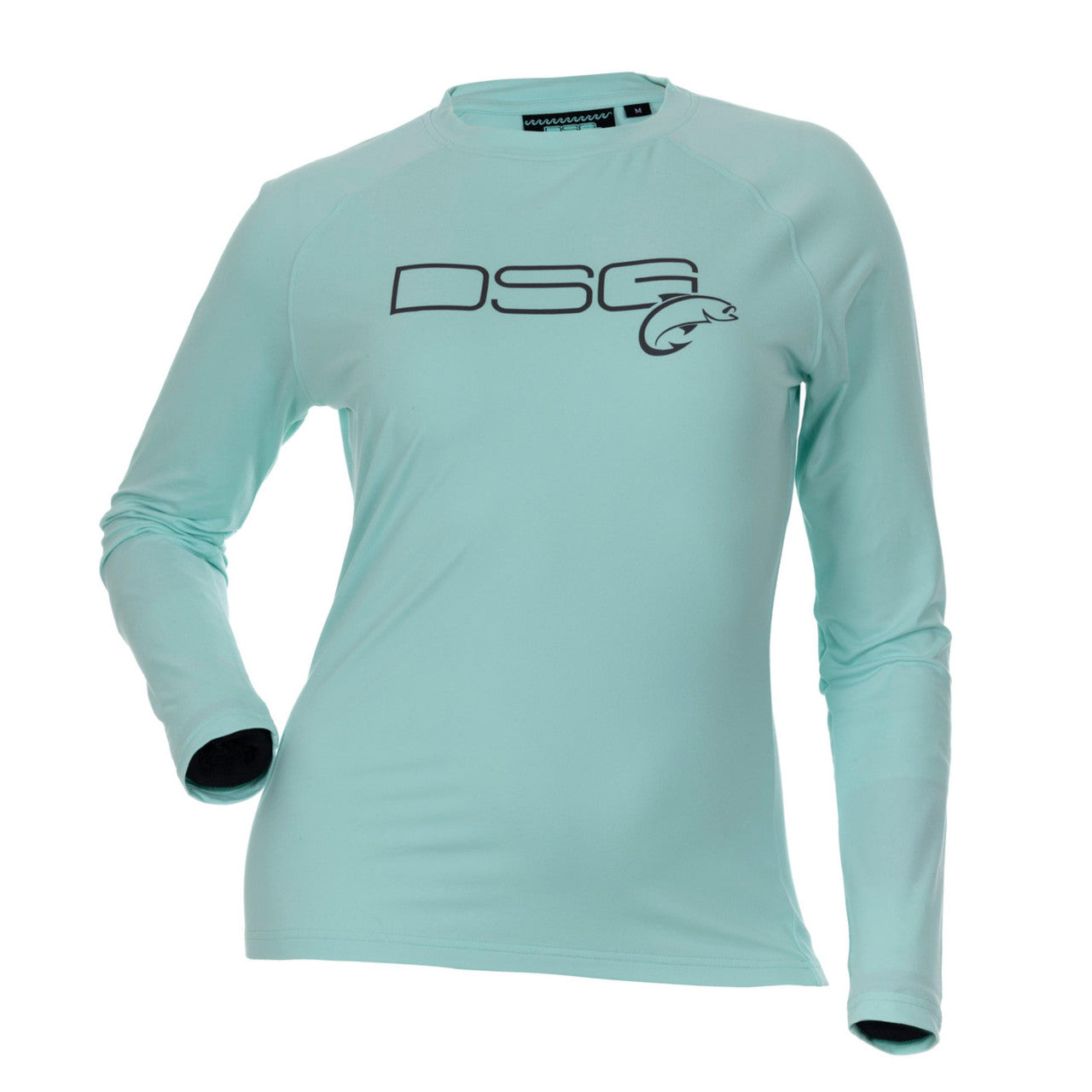 The fishing line follows DSG Outerwear's core strategy of building women-specific apparel that is functional and fashionable. All DSG Outerwear's UPF fishing shirts are designed by women with input from women fishermen and backed by a woman-owned company! This shirt has UPF 50+ sun protection and that is the highest rating on the ultraviolet protection factor scale. UPF measures how much of the sun’s UV radiation is absorbed by the fabric, protecting your skin from overexposure. Don’t let a bad sunburn ruin your outdoor fun; wear a UPF 50 fishing shirt from DSG!