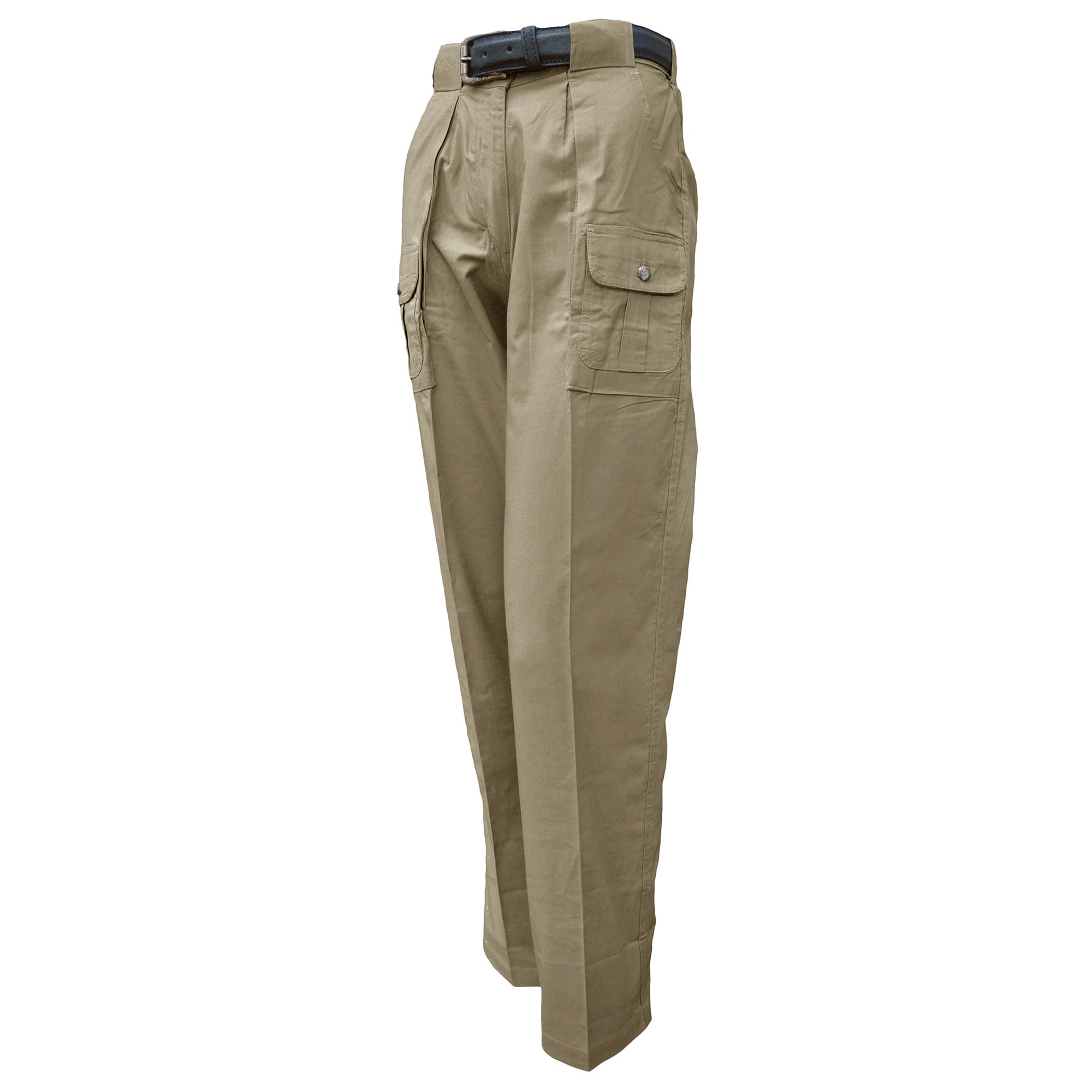 Six Pocket Congo Pants for women offer plenty of storage and a comfortable fit for your casual convenience when traveling to the African continent. Two flap covered pockets in front, two more in back, and two side entry pockets securely hold essential hunting and hiking gear. Generous overall sizing to fit a woman's shape allows for flexibility and freedom of movement when tracking game or exploring new territories. Large belt loops easily accommodate wider belts. Made in Africa from pre-washed and pigment dyed 100% cotton. These women's Congo pants with six pockets and relaxed fit are the logical choice for the intrepid traveler and outdoor enthusiast.