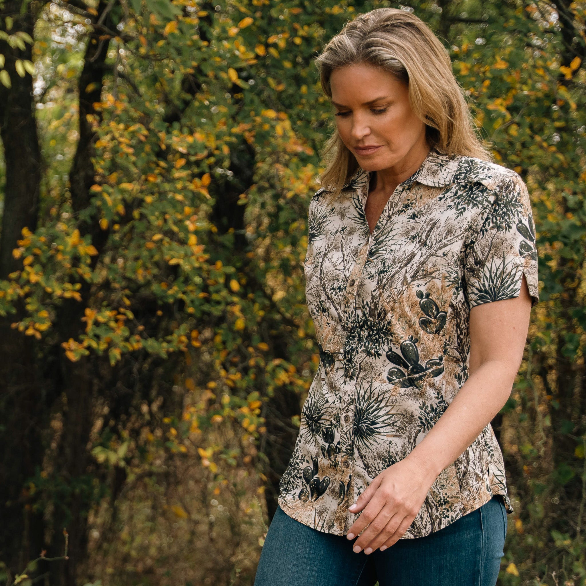 Whether you're stalking game in the woods or enjoying a day at the range, the Ladies' MicroFiber Shirt in southwest camo style is the perfect choice for women who demand performance and style in their hunting apparel.