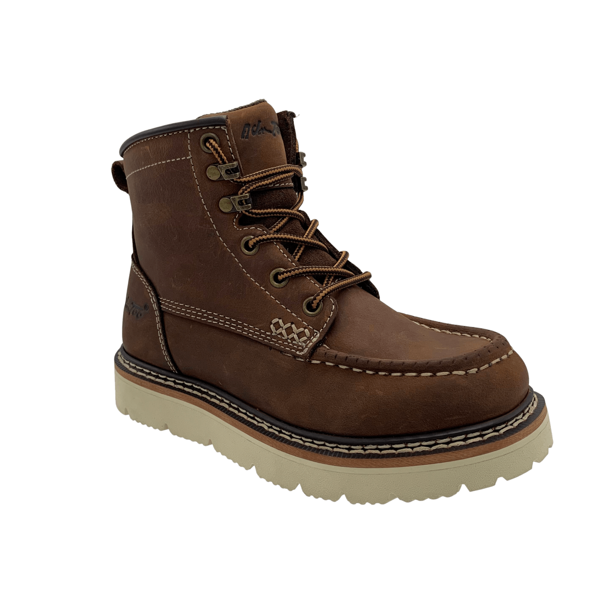 A retro design for our hardworking woman in mind, Legacy's Women's 6" Moc Toe boots in Whiskey Brown are the upgrade you've been looking for in your work gear. The premium Crazy Horse Leather ensures not only durability, but a touch of style as well. Along with the moisture-wicking mesh lining, these boots offer all-day comfort for those long work days. And with the anti-fatigue insole design, you can stay on your feet longer without any discomfort. These boots are built to withstand any challenge, making them the perfect addition to your work wardrobe.