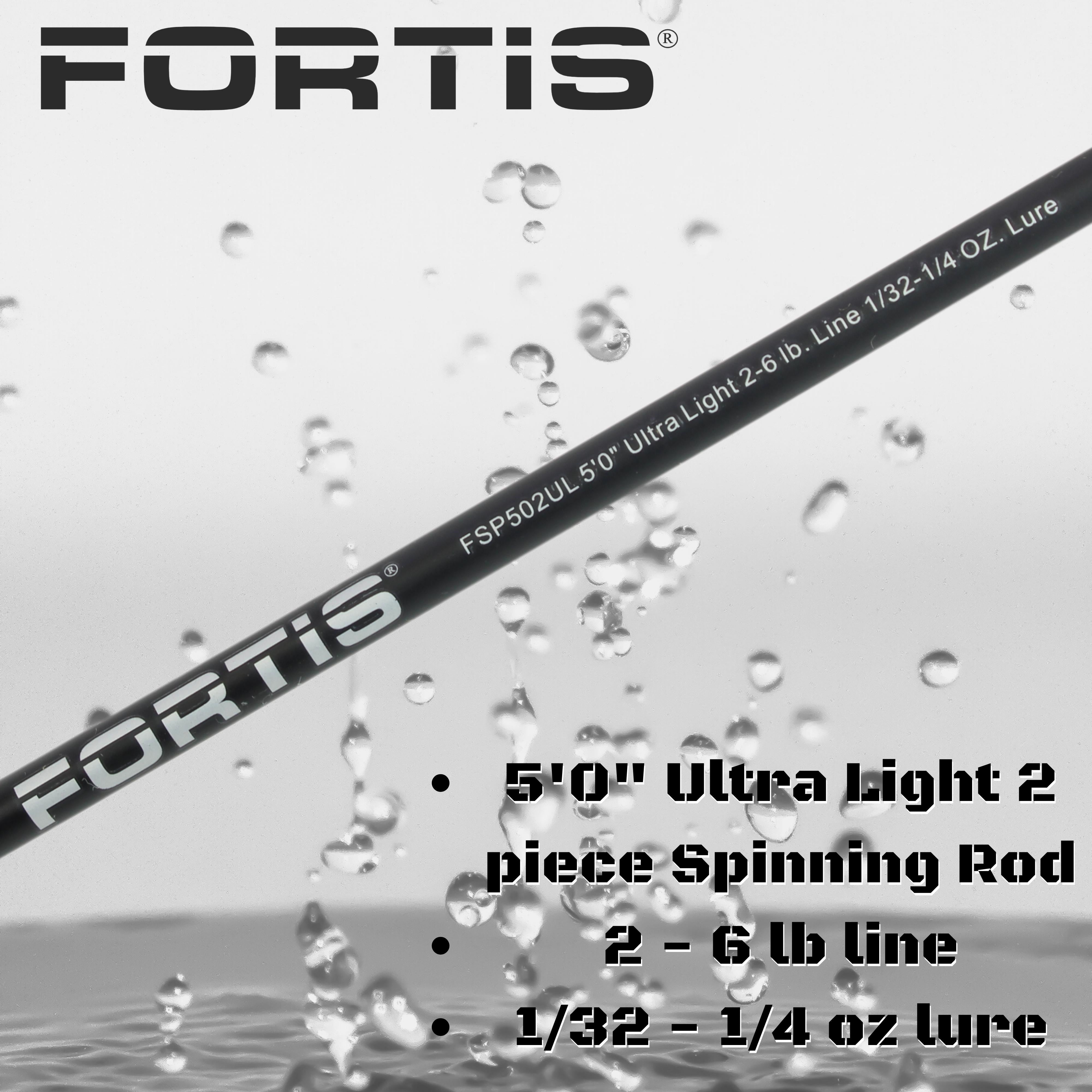 5' Fiberglass/Graphite Spinning Rod, Ultra Light Action | 2 Piece | FORTIS
