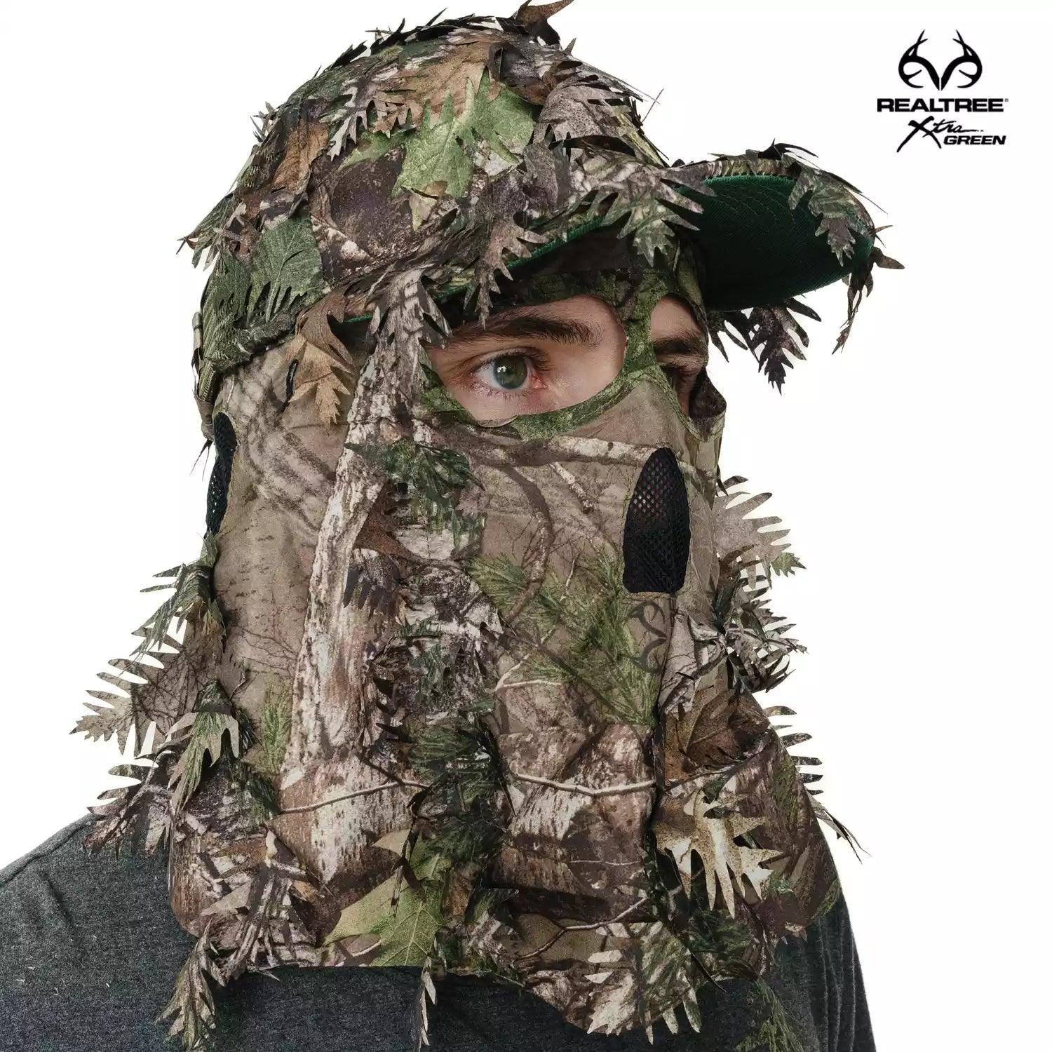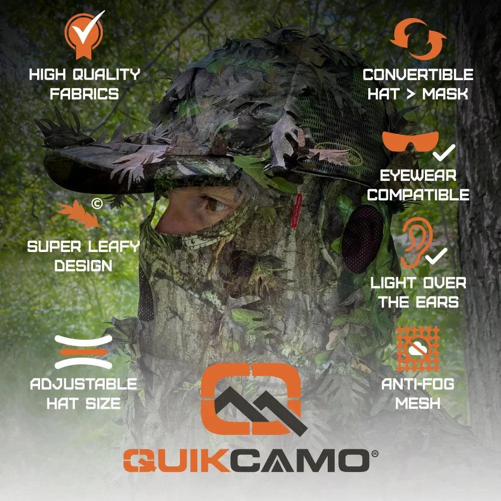 2-in-1 FRONT Leafy Face Mask and Camo Hat (Adj, OSFM)